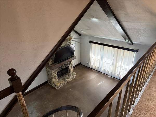 Discover an incredible property at 47 Serenada Ln in Shawnee. What an opportunity to own this single-family home on a spacious, nearly 2-acre lot, in a well-established neighborhood, surrounded by neighbors who exercise pride in ownership. This residence features 4 bedrooms (upstairs loft used as fourth bedroom) and two full baths, including a luxurious primary suite with fireplace, ensuite has a sauna and spa tub. Home has a large loft that could be used for anything you can imagine. 4th bedroom, playroom, office, second living let your lifestyle dictate the use for this upstairs space reached by a spiral staircase. The contemporary design allows for tons of natural light, including a set of French doors leading to the patio and pool area with pool house. Allow your imagination to create a home with your personal touch to make it your own. The well-established neighborhood provides privacy in a tranquil neighborhood with large lots ranging from nearly 1 acre to over 2.25 acres. An inviting in-ground pool and pool house make it perfect for family gatherings or entertaining guests. Enjoy the convenience of a generous two-car garage with ample storage and an in-ground storm shelter freeing you of storm concerns. The neighborhood is sprinkled with mature trees, enhancing the serene atmosphere. A joy to come home to this neighborhood at the end of a productive day. Don't miss out on this unique opportunity to create your ideal living space in a tranquil setting. All information believed to be correct buyers to satisfy themselves. Some photos have been colorized and enhanced with AI. School District is Grove, a dependent school district, can go to North Rock Creek, or any high school of your choice.