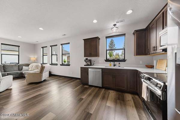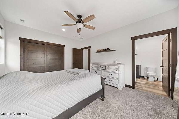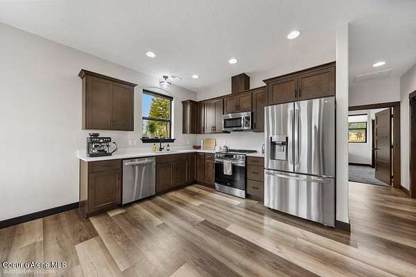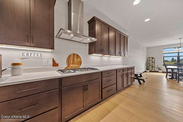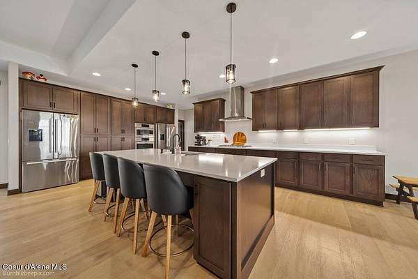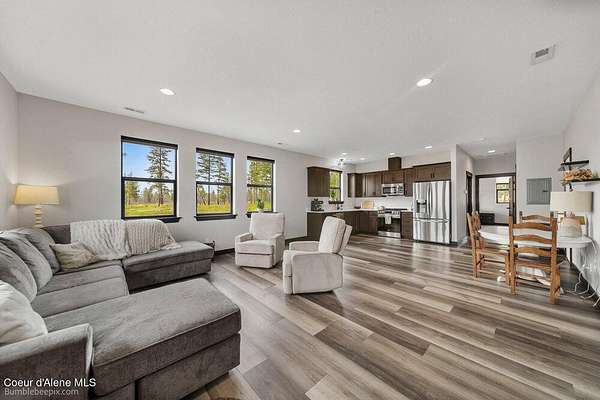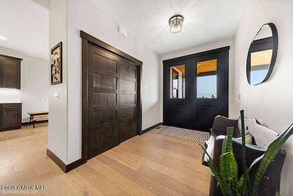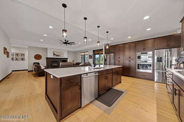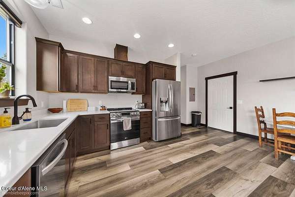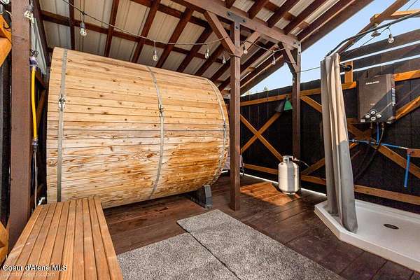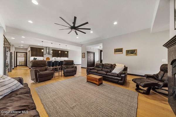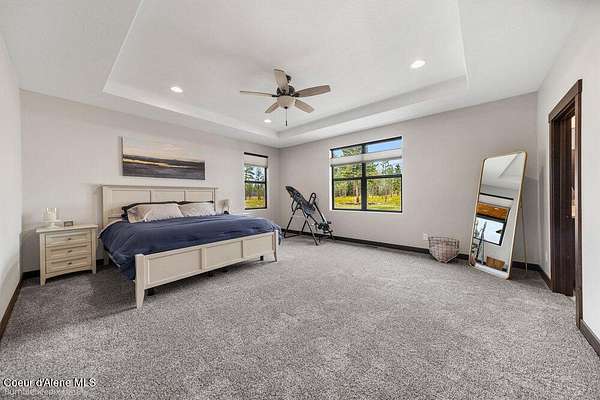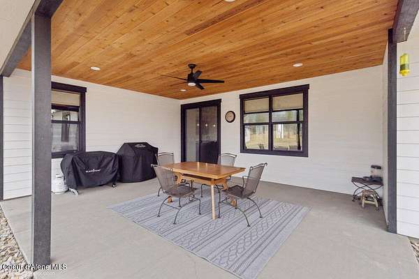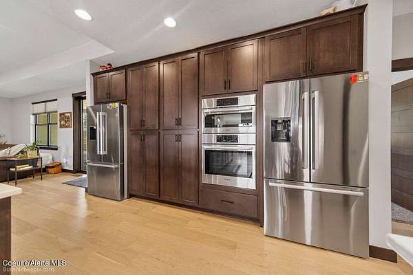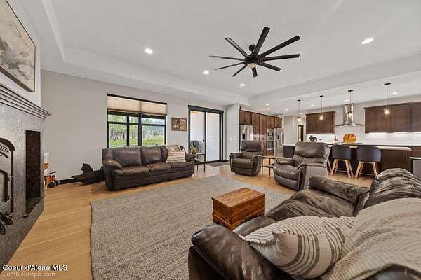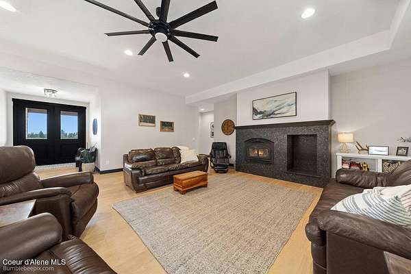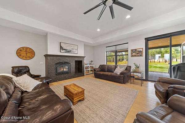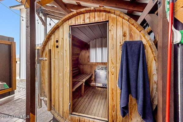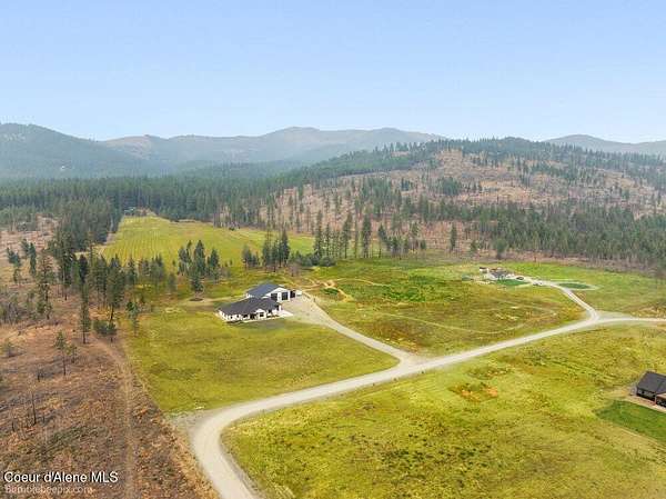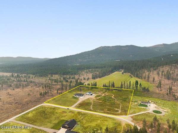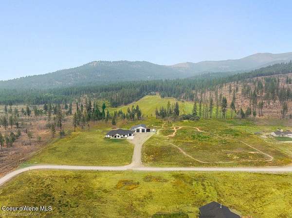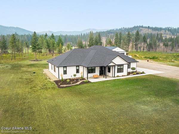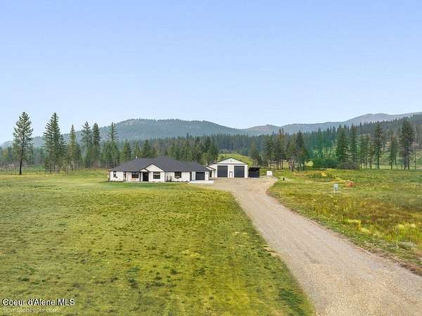Welcome to this exceptional North Idaho retreat offering space, comfort, and incredible views. Set on 10 scenic acres bordering specialty land and showcasing breathtaking mountain views, this beautifully maintained property features a spacious 4-bedroom, 2.5-bath main home along with a separate 1-bedroom, 1-bath additional living quarters perfect for guests, multi-generational living, or rental potential. Inside the main residence, a grand entry opens to a stunning great room with 9-foot ceilings, an elegant tray ceiling, and a cozy high-efficiency wood burning stove with granite surround. The gourmet kitchen is designed for both everyday living and hosting, featuring Huntwood cabinetry, quartz countertops, Bosch appliances, two refrigerators, a built-in oven and microwave, and a 36-inch gas cooktop with hood vent. The spacious primary suite offers a private retreat with a luxurious oversized tile walk-in shower, soaking tub, dual vanities, and generous storage. Additional highlights include an oversized laundry room, covered front entry, and a covered patio with a beautiful cedar tongue and groove ceiling, ideal for enjoying peaceful North Idaho evenings. Beyond the home, the impressive 40' x 50' x 16' insulated and drywalled shop is perfect for hobbies, storage, or workspace. Outside, you'll find convenient RV hookups, walking trails, a charming cedar barrel sauna, and propane shower offering a peaceful outdoor oasis. This property offers the perfect balance of privacy, functionality, and North Idaho lifestyle.