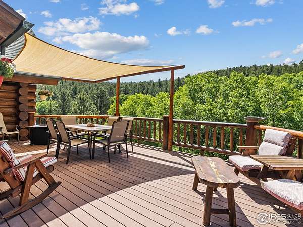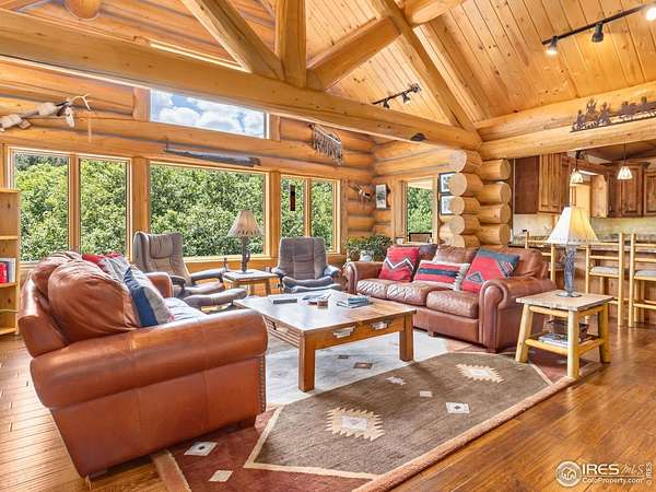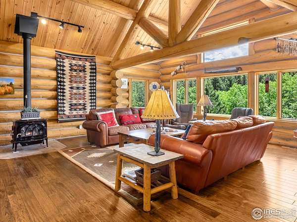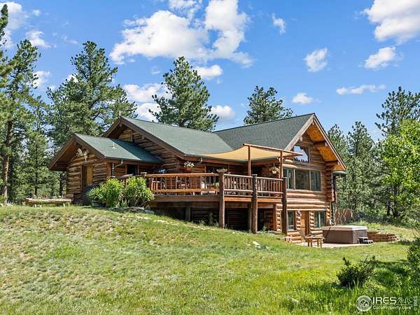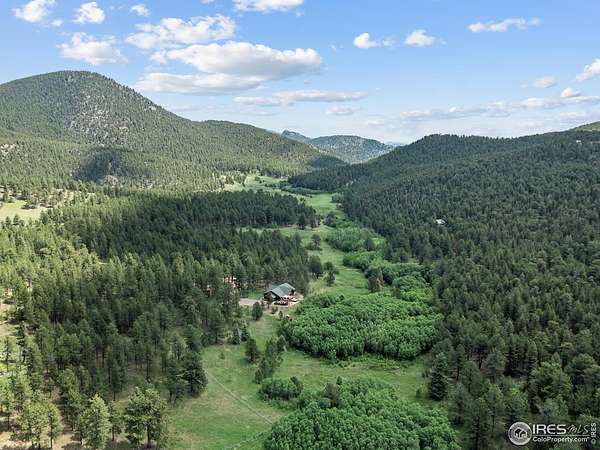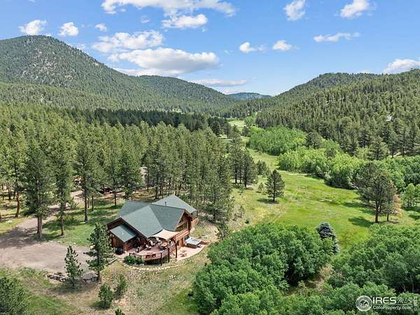 The luxury, sanctuary retreat you've been looking for is now on the market. You'll discover an extremely rare, one of a kind Rocky Mountain property complete with a gorgeous, full 12" log home built by Legacy Log Homes. Perfectly situated on 22+ very private acres of lush meadow, aspen grove, and evergreens with a seasonal creek running through, creating natural habitat for prolific wildflowers and ample opportunity to view the native wildlife. The main level of the home has vaulted beamed ceilings, wood floors, plentiful windows throughout, a gourmet kitchen with generous granite counters and breakfast bar, tile flooring, stainless appliances, custom lighting and so much more. The lower level opens to a patio where you can step outside and luxuriate in a private meadow full of wildflowers lined with aspen. In addition to the log home, the property includes an A-frame that's been decommissioned and is used as a work shop, together with an additional out-building for storage. Only minutes away from the Wild Basin entrance to Rocky Mountain National Park, Indian Peaks Wilderness, and Roosevelt National Forest, you're invited to experience all the outdoor activities the Rockies offer, as well as festivals, shopping and dining in the surrounding areas that include downtown Lyons, Estes Park, Allenspark, Jamestown and within an hour of Lake Eldora (Eldora Mountain) ski area. This sanctuary property is easily accessed by a well maintained private road. Don't miss this one!