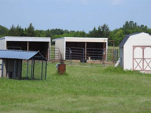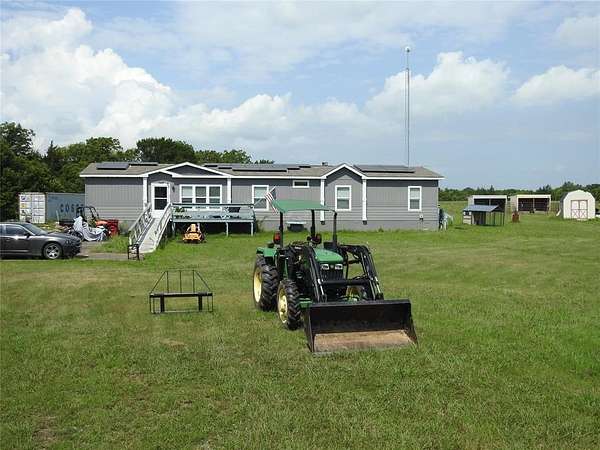 All electric, Schult Savannah home with several upgrades to the floor plan setting on 8.40 acres just outside of Randolph and on FM 896 State Hwy with asphalt drive way up to the house. This home is a modular or double wide home built in 2019 with 2280 sq. ft., 4 bedroom, 3 full baths, wood burning fireplace, 32 x 80 in size, 16 x 40 back deck, handi-capped entrance, solar panels on the house and will stay. On the property is a 5 strand barbed wire fence, holding 3 donkeys, a few head of cows and chickens. 2 lean two's , a 40 ft. metal container for storage, 2 - 10 x 12 storage buildings, chicken coops, a small chicken run and if one wants to get chickens they can be allowed to free range as they are a good distance off the road. The house is located at the edge of Randolph but has the Trenton address because the mail is delivered out of the Trenton Post Office. The location is just a couple of minutes from HWY 121 with easy access into the metro-plex, the sellers may be interested in selling some of the personal property they have including the John Deere , 4 wheel drive tractor. Property is solid with good foundation and roof and will easily qualify for a FHA loan. Sellers are motivated to sell and to move out of state. There is also a vidio that shows more if interested. Call listing Agent Ron Lester at 903-782-2524 to schedule your showing.