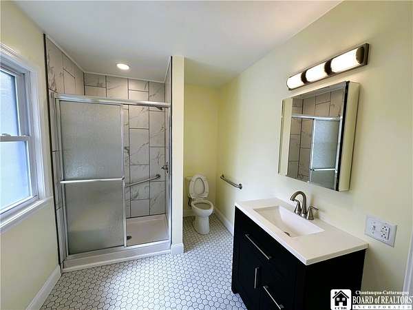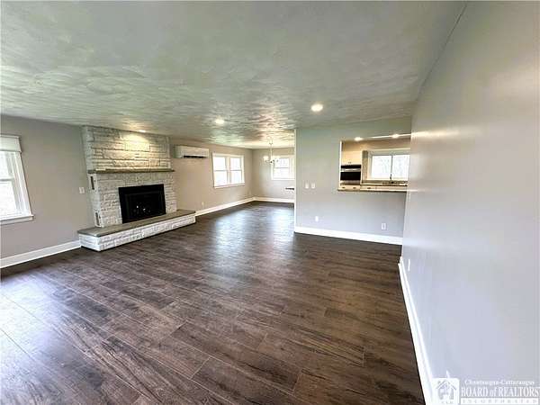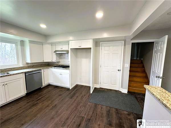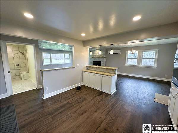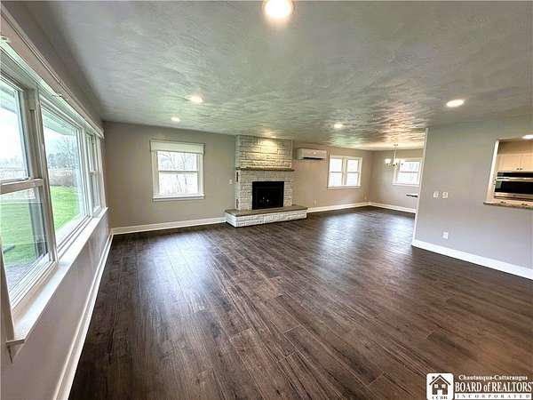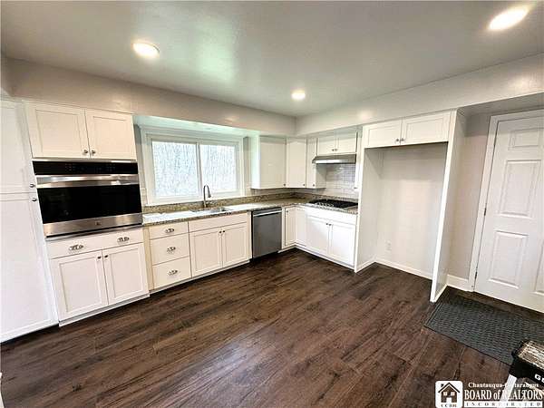 Peaceful country living. This beautifully updated split-level home offers a perfect blend of comfort, style, and functionality. Recent upgrades include a modern kitchen featuring a built-in oven, range, and dishwasher, ideal for everyday living and entertaining. The main level includes a spacious, fully accessible bathroom, while the second level offers an additional 2.5 baths for added convenience. Throughout the home, you'll find a mix of new flooring and classic hardwood, creating a warm and inviting atmosphere. The open-concept living room and kitchen are filled with natural light thanks to surrounding windows, and a cozy gas fireplace provides the perfect touch for chilly mornings and evenings. Comfort is a priority with mini-split systems throughout, offering efficient heating and cooling, along with a six-zone heating system and hot water baseboard backup. The attached garage is heated, and the basement level features a semi-finished family room-perfect for additional living or recreational space. Located in the desirable Frewsburg school district and just minutes from the village, this home is a must-see. Come take a look-it may be exactly what you've been searching for!.