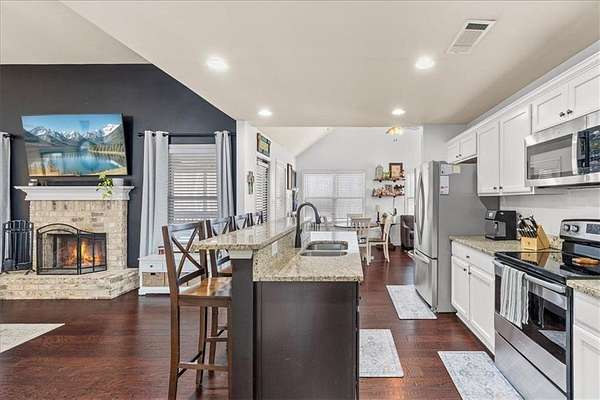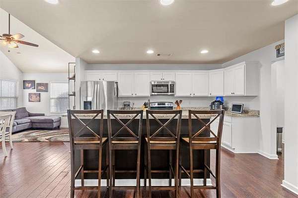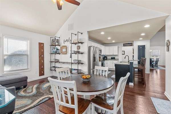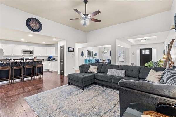 Tucked away on a quiet cul-de-sac in the highly sought-after Jefferson City School district, this spacious ranch with a finished basement sits on 2.14 acres and offers room to live, work, and entertain. The main level features an open concept layout with a vaulted living room, hardwood flooring throughout the living areas and kitchen, and four bedrooms with 2.5 baths. The kitchen is designed for gathering, with granite countertops, stainless steel appliances, and a large island that opens to the living space. Step out to the covered back porch and enjoy the peaceful backyard setting, where deer are often seen roaming the wooded portion of the property. The finished basement expands the living space with a full theater room (furnishings remain!), additional living area, bedroom, office, and full bathroom, plus walk-out access to a patio. Two unfinished storage rooms provide excellent space for organization or future customization. Outdoors, the property includes a creek and an above-ground pool with deck and furnishings remaining, creating a private retreat that still offers convenience to town. A rare combination of acreage, functionality, and location in one of Jackson County's most desirable school districts.