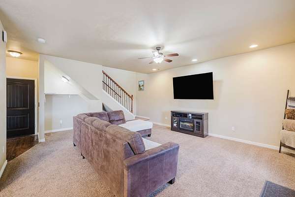 Built for Comfort, Designed for Living! Spacious 4-Bedroom Home. Welcome to this beautifully maintained 4-bedroom, 2.5-bath home offering 2,442 sq.ft. of comfortable living space, nestled on 1.34 acres with stunning views and room to roam! Built in 2014, this home blends modern features with cozy charm. Step inside to an open floor plan perfect for entertaining, featuring vaulted ceilings, a den with a pellet stove, and a spacious living, kitchen, and dining area that flows seamlessly together. The kitchen boasts granite countertops, stainless steel appliances, and a refrigerator that stays at no extra cost to the buyer. Upstairs, you'll find four oversized bedrooms, each with its own walk-in closet. The primary suite is extra roomy with two walk-in closets and a luxurious bath complete with a deep soaking tub, walk-in shower, dual sinks, and granite countertops. Outside, enjoy a fully insulated shop, a large cement patio, a patch of green grass, and a charming two-story playhouse (currently used as a tool shed below). The yard features fruit trees, berry bushes, and open skies making it feel like your own private retreat. 1200 sq ft shop with 120/240 power & insulated. Well cared for home! Move in ready!