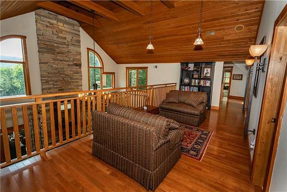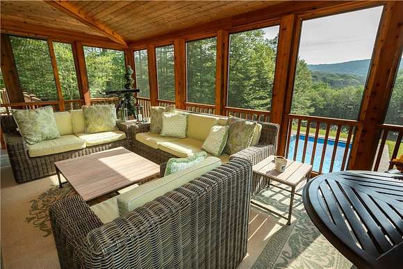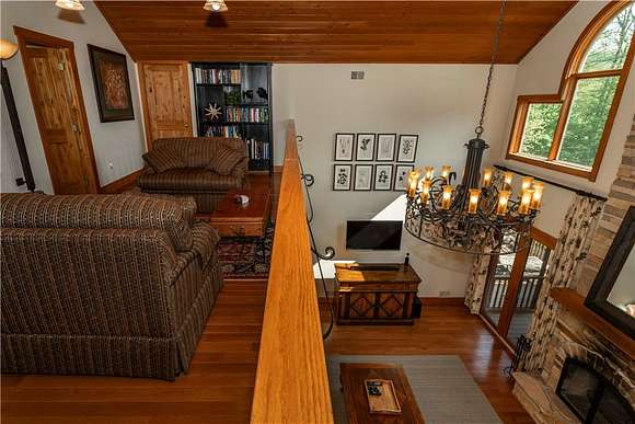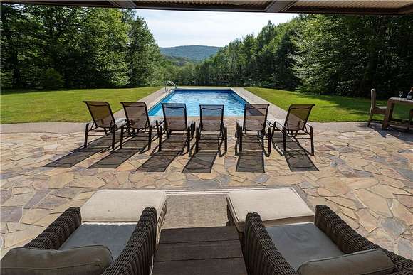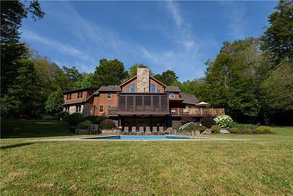 Discover your luxurious retreat nestled in the prestigious Pheasant Run gated community, just moments from 7Springs. This exquisite home blends sophisticated indoor living with serene outdoor tranquility. Step inside to find gleaming hardwood floors leading into the two-story living room, complete with a cozy gas fireplace, and elegant chandelier creating a warm ambiance. Two master suites, one on each level, provide ultimate privacy and comfort. The lower level has comfortable radiant floors. Outside, the meticulously landscaped backyard offers a picturesque oasis with serene views, an in-ground heated salt water pool and ample space for outdoor gatherings. This property even includes a site for a pre approved guest house. Enjoy the convenience of a shuttle service and / or private parking spaces at the resort. Don't miss this rare opportunity to own a truly remarkable property that seamlessly combines luxury, comfort and natural beauty.