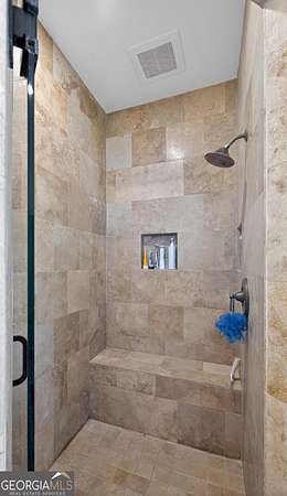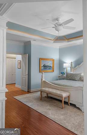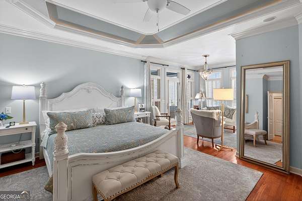 - Bookcases, Double Vanity, High Ceilings, In-Law Floorplan, Master On Main Level, Separate Shower, Soaking Tub, Tile Bath, Tray Ceiling(s), Vaulted Ceiling(s), Walk-In Closet(s)