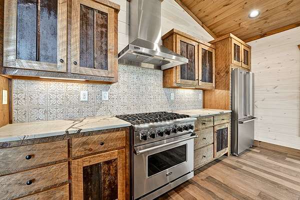 Perched above the treetops in the heart of the coveted Aska Adventure Area, this breathtaking new-construction mountain retreat offers a rare front-row seat to sweeping, long-range Blue Ridge Mountain views--an experience that feels both intens private and effortlessly connected. Just ten minutes from downtown Blue Ridge via paved access, this exceptional home delivers the perfect balance of seclusion, luxury, and convenience. From the moment you step inside, the mountains command your attention. Soaring cathedral ceilings and expansive walls of glass flood the great room with natural light while framing endless ridgelines like living artwork. A dramatic floor-to-ceiling stone fireplace anchors the space, rising with quiet strength and warmth--an architectural centerpiece that sets the tone for the home's refined mountain elegance. The open-concept design flows seamlessly, creating an atmosphere that is grand yet inviting, dramatic yet comfortable. Every detail has been intentionally curated to feel timeless and elevated--rich natural wood tones, clean architectural lines, and designer lighting come together to create a warm, modern lodge aesthetic that never feels overdone. The chef's kitchen is both a showpiece and a gathering place, featuring custom cabinetry, granite countertops, premium stainless-steel appliances, and an accordion-style window that opens wide to welcome mountain air and views--perfect for entertaining or slow mornings with coffee and the sunrise. The adjacent dining area flows effortlessly, designed for memorable meals that linger long after the table is cleared. The main-level primary suite is a private sanctuary, offering a spa-inspired bathroom with a tiled walk-in shower (for those who love to soak in a tub).Serene rest and renewal awaits. Step outside to your private deck, where an outdoor fireplace glows beneath the stars--an intimate escape for quiet evenings and crisp mountain nights.Upstairs, cozy loft overlooks the great room below.