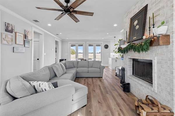 This custom-built home, completed in 2023, offers thoughtful design, quality craftsmanship, and breathtaking country views. Featuring 3 bedrooms and 2 bathrooms, the layout is both functional and inviting. The heart of the home is the stunning kitchen with a large island, farmhouse sink perfectly placed beneath a picture window, and a spacious walk-in pantry complete with countertop workspace and a charming coffee nook. A generously sized mudroom provides abundant cabinet storage, making everyday living effortless. The living room is centered around an amazing brick fireplace and filled with natural light from expansive windows that frame incredible countryside views, creating a serene and welcoming space. Every room is wired for TV and internet, offering modern convenience throughout the home.
