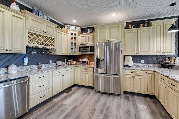 AMAZING HOME WITH ACREAGE! This luxurious & versatile estate offers endless possibilities for multi-generational living, guest accommodations, or a private retreat for all. Completely remodeled and updated home!! Featuring 4 bedrooms & 2 additional flex rooms perfect for offices, hobby spaces, or extra sleeping quarters. Step inside to find all-new flooring & freshly painted walls throughout, a whole-house Generac generator, & a beautifully finished basement complete with full kitchen, 1 bedroom, a flex room, & private entrance--ideal for in-laws or teens. The trex wraparound porch is only 3 years old! Over the garage, you'll find another bedroom, & flex/game room, plus an additional full bath at ground level in the garage. The 15'x15' bedroom & 13'x14' flex room are generously sized. Dual washer/dryer hookups in both the garage & home offer added convenience. Relax outdoors on the expansive patio--pre-wired & ready for your hot tub oasis. Don't miss this rare & refined opportunity!