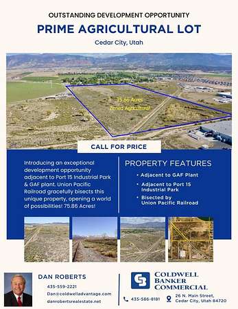 Travel west on Highway 56 from Cedar City approx. 4 miles. Turn north on 4900 west (east side of GAF building). Go north 1/4 mile to southwest corner of property.