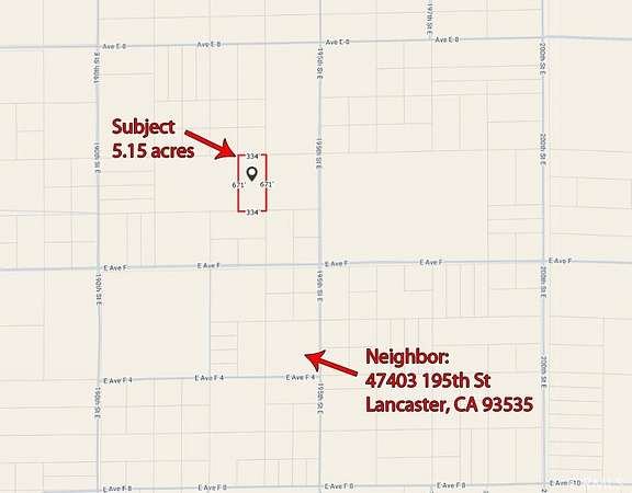 Neighbor's Address: 47403 195th St Lancaster, CA 93535. NW corner coordinates: 34.753335, -117.786438