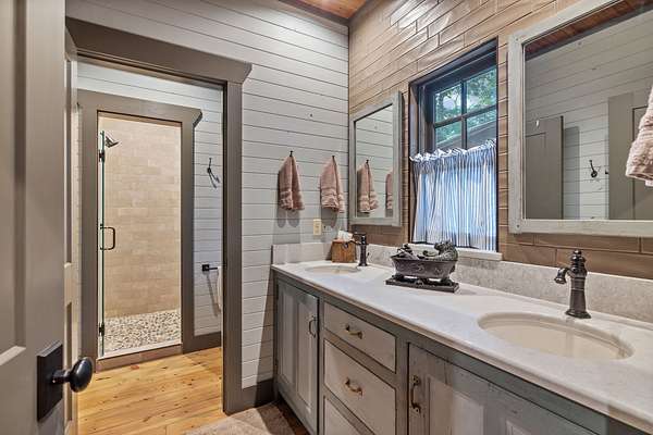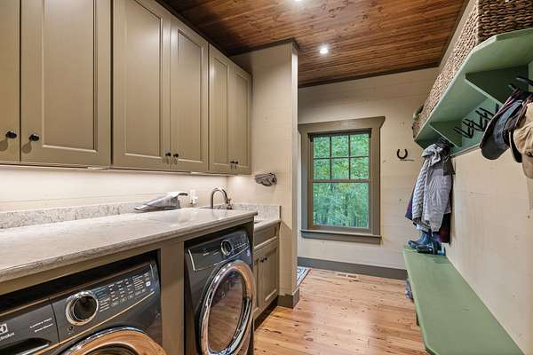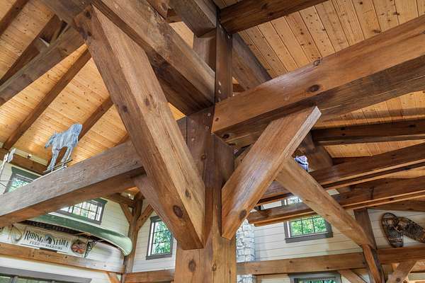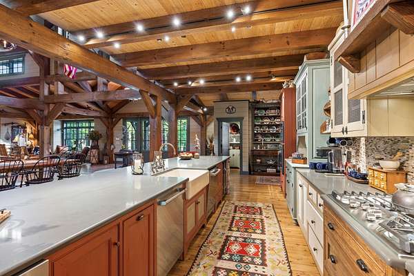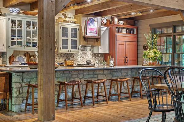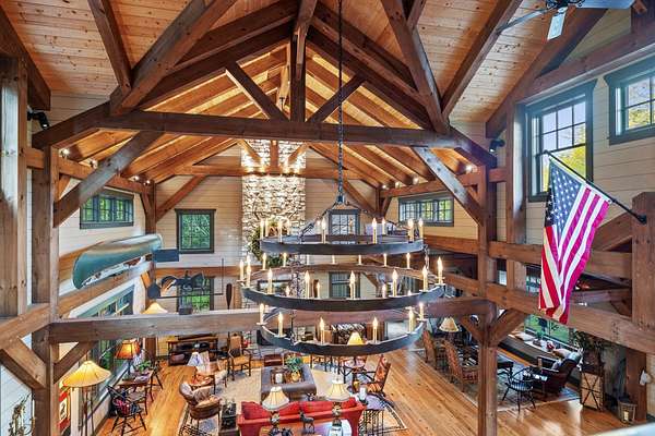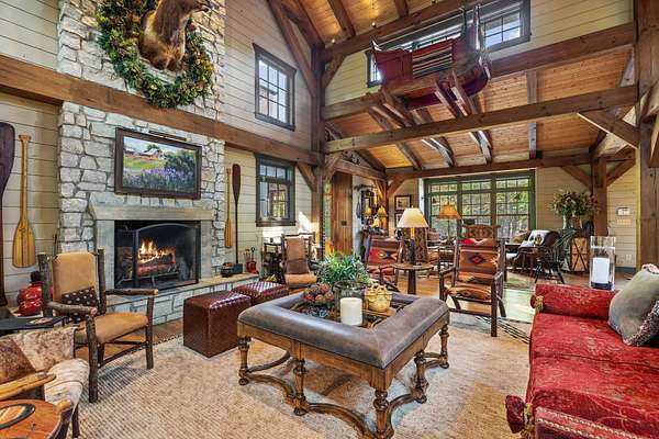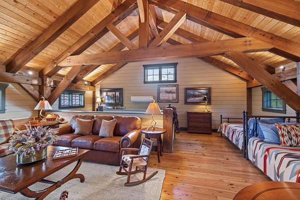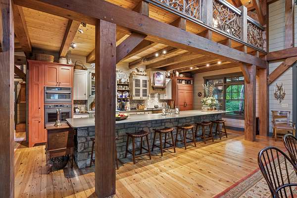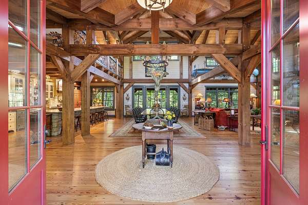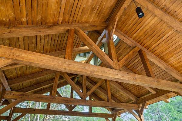 When you step inside the home the natural elements pop! Large, engineered wood-pegged timbers soar high into the 24' soaring ceiling above. A stone chimney climbs high drawing your eye upwards to cathedral type natural light pouring in from windows at the top. The home is fully constructed with quality durable materials used throughout; there's no drywall inside the structure whatsoever. Underneath the home is a six-foot walkable crawlspace with a concrete floor. In this area you'll find spray foam insulation, tankless water heaters, and a huge storage area. A peaceful setting with a desirable, and convenient location with room for horses or other animals, make this the ideal luxury farm experience.