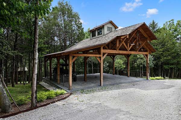 Power is ready for a barn and fenced pasture is already established. A separate and cozy, luxury guest cottage and an awesome workshop with 3 car garage, timber frame parking structure, & equipment barn are also included. These additional structures are all connected by gravel pathways. Have kids in mind? We have an adorable treehouse with power next to a mini sports field to keep them occupied. This one is a true gem. Look for the You tube video link