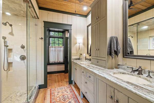 One of a kind custom open floor plan with exquisite attention to detail throughout. Love the furnishings? They're negotiable! Ask me about it... Exquisite primary wing on main level has a steam shower, an office, and a sitting room. Total of three bedrooms all with en-suite. Spacious pantry, ceiling fans, outdoor shower/mudroom entry, golf cart storage space, and so much more are included with this one!