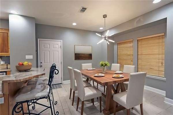 Outdoor living is a dream with a spacious screened-in porch featuring retractable shade screens, an extended raised deck with a pergola--perfect for relaxing or entertaining. The converted 2-car garage is now a sports and entertainment room, complete with a custom-built bar area for game nights and celebrations.