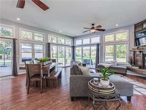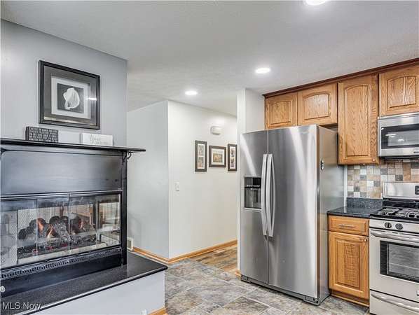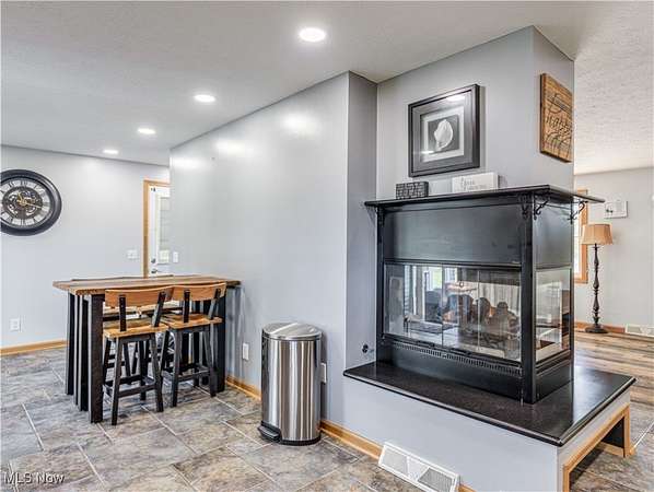 Situated on 1.6 acres, this incredibly well-maintained ranch home offers 4 bedrooms and 2 full baths in a beautiful urban setting! Large front porch welcomes you into the cozy living room. A 3-sided gas fireplace is a focal point & enjoyed from the living room & kitchen. The eat in kitchen is nicely appointed with stainless steel appliances, quartz countertops, wood cabinetry and canned lighting. You will find the primary bedroom spacious with ample closet space. A stylish first floor full bath is modern with granite topped cabinet and tiled shower. 2 additional bedrooms finish off the main level. The bonus room is accessed from the garage and it's a Showstopper! Be drawn to the warmth of the fireplace and the awe-inspiring views of the large backyard! Beautiful white cabinetry, convenient counter space & undermount lighting make this the perfect entertainment space year-round! The finished basement provides extra living space, 4th bedroom with egress window and the 2nd full bath with large tiled walk-in shower. The lower-level laundry room is massive! Plenty of counter space and storage, making laundry day a delight! The 2-car attached garage features epoxy flooring and diamond plated built in cabinets. There's more! An impressive stamped concrete patio with walkway to a large built-in firepit area is perfect for outdoor enjoyment! Electric hook up available for future hot tub, along with a built-in gas line for grill. Location is ideal with easy access to Rt 2, I90 and the Turnpike. Amherst has a quaint small-town feel, charm & friendliness, with all conveniences nearby. This home is a gem! Must see to appreciate!