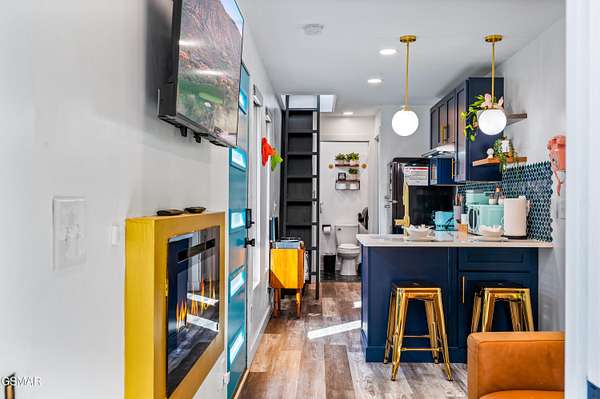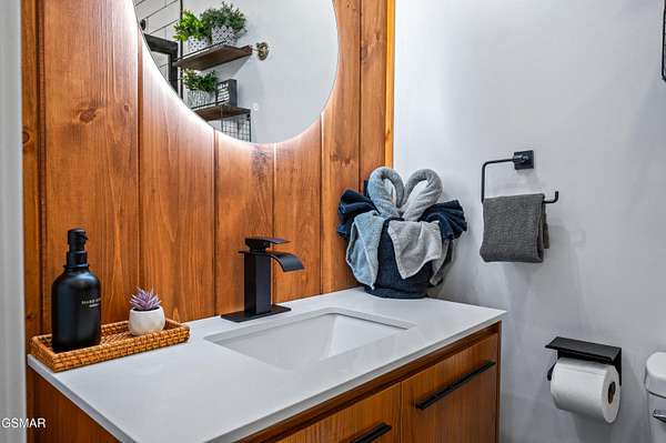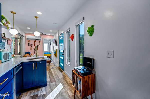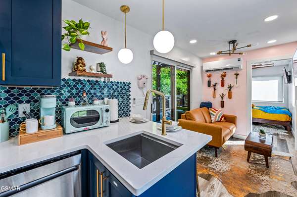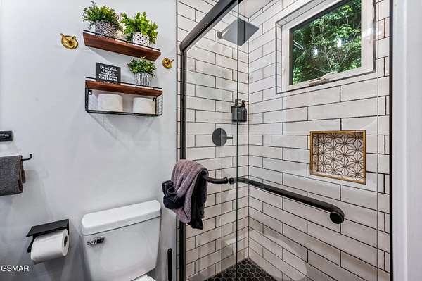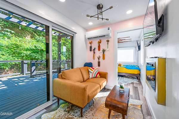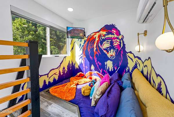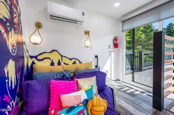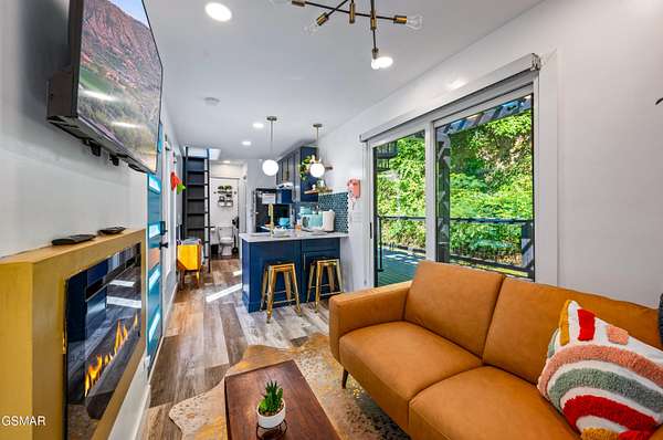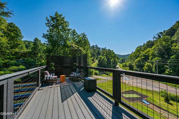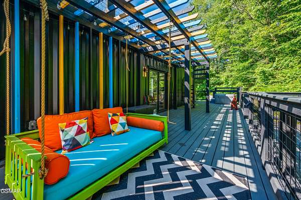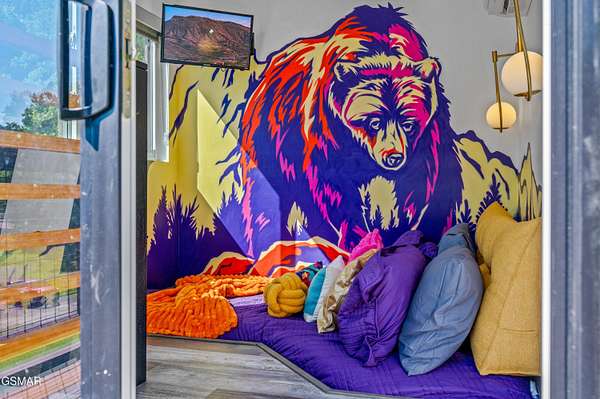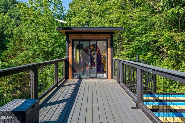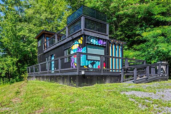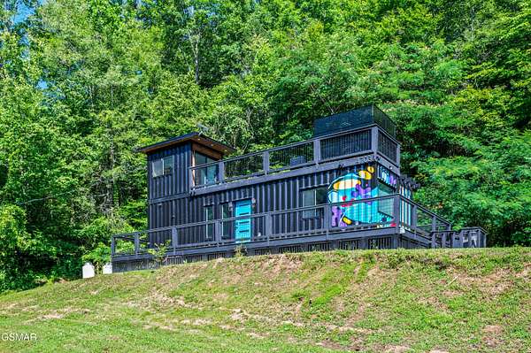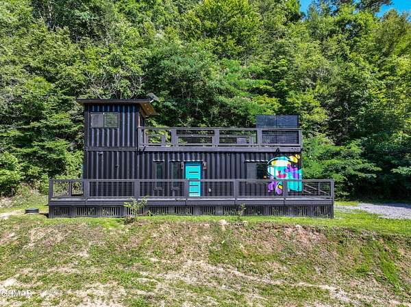 UNIQUE AND UNFORGETTABLE = REVENUE IN THE SMOKIES!! FIVE MINUTES to GSMNP and in SEVIER COUNTY! Welcome to ''The Bruin Bin''-a one-of-a-kind, one bedroom plus loft, CONTAINER cabin retreat, designed for those craving both style and soul. Tucked away just minutes from Gatlinburg, Douglas Lake, and the trails of Great Smoky Mountains National Park, this custom-built getaway is more than a cabin-it's an experience. Packed with thoughtfully added design detail in this tiny dynamo, this retreat is sure to create the perfect romantic escape: *Retro-modern kitchen with navy cabinetry, gold hardware, mint appliances, and even a record player * Mid-century style bedroom with large windows, a plush queen bed, and just the right vibe for cozy nights in *Lofted sunken bed (loft area is not included in square footage but adds additional space) with private rooftop deck access, ideal for stargazing and moonlit conversations *Design-forward spiral staircase also allows access to the rooftop patio from the lower deck *Spa-inspired bathroom with rainfall shower and luxe finishes *Outdoor swing bed for morning coffee or sunset wine under the trees *Private Outdoor shower and hot tub for the ultimate back to nature retreat *Mini golf and corn hole for fun on the front lawn. From the cozy fireplace, hand-picked local art and custom mural, you'll see right away this is no ordinary property! The Smokies is one of the top honeymoon destinations in the U.S., and this cabin has everything your guests are looking fr in a short-term rental-style, intimacy, and an unforgettable setting. And when it's time to explore, you're only 5-6 minutes from an entrance of the Great Smoky Mountains National Park (Cosby entrance) with its hiking trails and waterfalls. Gatlinburg and all the tourist attractions are a short drive away on easy, paved roads. Best of all, this delight is being sold fully furnished and turnkey. The hard work is already done-the sellers navigated all the red tape, secured full permitting, passed inspections, and created a rare, regulation-approved container home in the Smokies. Now it's ready for you to step in and make it a standout short-term rental investment or your own personal retreat. PLEASE NOTE: This property is an active rental, please do not drive up or approach with a licensed realtor and scheduled appointment.