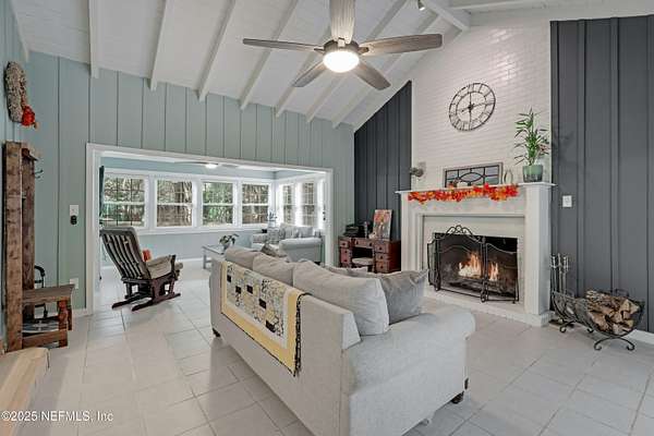 7.36 ACRE LOTUPDATEDMETAL ROOF Discover charm and rural living on this property that expands to 7.36 acres! Very Close to Lake Melrose and Santa Fe Lake to fish or boating! This 2 bed/2 bath home features updated interior including the kitchen and family room, and wood like flooring throughout. The kitchen features a farmhouse sink and TONS OF COUNTER SPACE, perfect for meal prepping. Rustic meets elegance in the HUGE LIVING ROOM boasting a wood burning FIREPLACE, vaulted ceiling and featuring two bonus spaces! The home features several ACCENT WALLS, adding to the charming feel. The master en suite bathroom offers a GARDEN TUB, ideal for relaxing. The guest bedroom features its own bathroom as well. Enjoy outdoor living in the FLORIDA ROOM, adding to the entertainment value. The home features an all in one washer/dryer unit and a NEW WATER HEATER, and a new drainage field. Outside, enjoy nature in your FENCED IN PROPERTY, featuring beautiful oak trees, and FRUIT TREES. Don't miss out!
