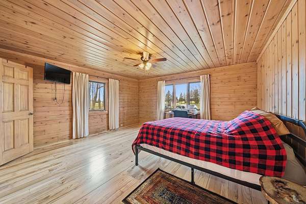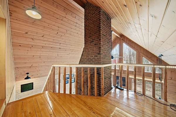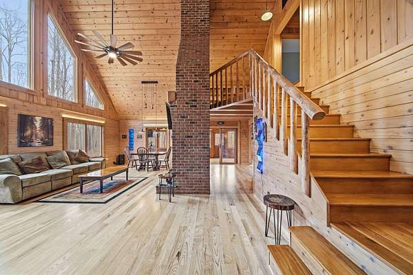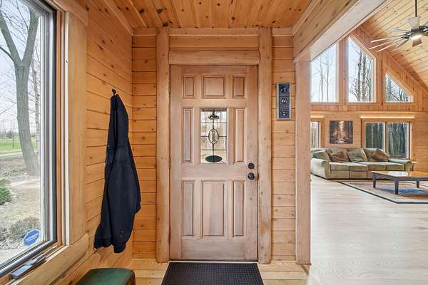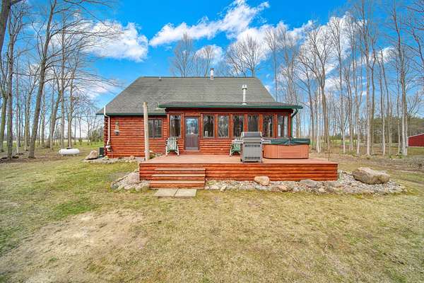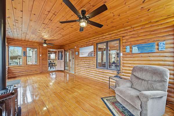Wooded Sanctuary with River, Pond, & Massive Heated Shop. Experience the perfect blend of rustic charm and modern capability in this stunning Madison Township 3-bed, 2-bath log cabin. Set on 31 sprawling acres--offering 23 acres of private woods and 8 cleared--this property is a true outdoor sanctuary. Inside, the home shines with brand-new ash hardwood floors, a first-floor master suite, and a cozy loft ideal for a home office. Relax in the 3-season room by the gas stove, or retreat to the full basement for extra space. The exterior is an enthusiast's dream, featuring a massive 40x90 pole barn equipped with 240v electric and propane heat. The grounds are equally impressive, boasting a long, lighted driveway, a tranquil river winding through the land, and your very own stocked pond. With dual heating options (outdoor wood boiler or propane furnace), this estate is as practical as it is beautiful. A rare find that must be experienced in person!