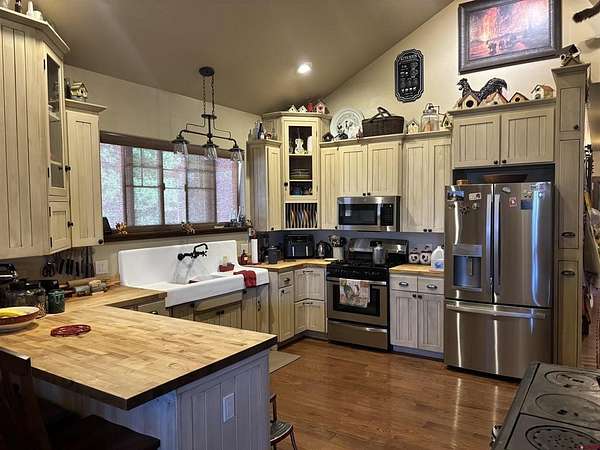 Burton Bullington, Shaffer Real Estate Company, C: 970-596-4744, burtonbullington@gmail.com, www.crenmls.com: Turn-key horse property on Sanborn Park! Nestled in the mountains between Montrose and Norwood, this private 1800 sq. ft. home is beautifully finished and move-in ready. The property is fully set up for equestrian living with a thoughtfully designed 80x86 horse barn, a 40x60 pole barn, a 30x64 insulated shop, and additional outbuildings including a shed, insulated dog pen, and RV hookups. Every detail has been planned with care to support horses, hobbies, and country living. Located in coveted Hunting Unit 61 on Sanborn Park Rd which is County maintained year round. Minutes away from class 1 fishing on the picturesque San Miguel River, this rare find offers both functionality and mountain tranquility.