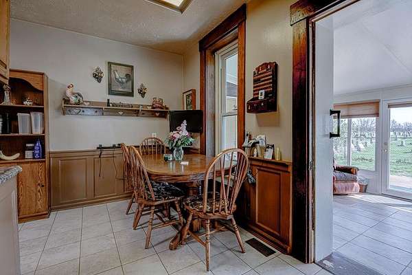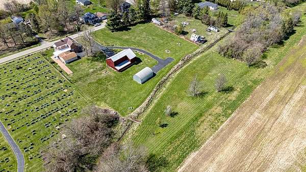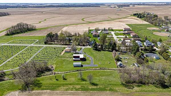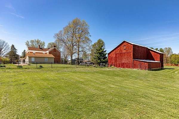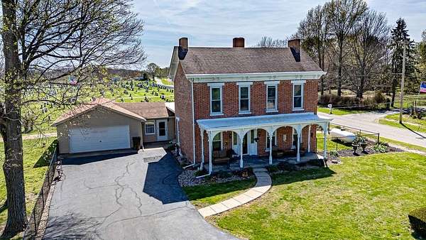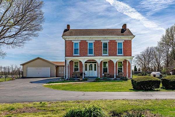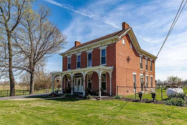 Timeless 1890 brick farmhouse on 3.069 acres offering character, space, and functionality. This 5 bedroom, 2 bath home features approx 3,376 sq ft with beautiful natural woodwork, hardwood floors, tall ceilings, and three fireplaces with gas logs. Original details include a stunning staircase, rich trim work, and transom windows that showcase the craftsmanship of the era. The main level offers a first-floor bedroom and two full baths, plus a bright three-season room off the kitchen leading to a patio, perfect for enjoying the peaceful setting and surrounding views. Updates made over the years include roof, HVAC, windows, and flooring. Outside offers a fenced yard, paved driveway extending to the rear, barn and quonset hut w/ elec, & a creek behind the barn. Ideal for hobby farm, workshop space, equipment storage, or recreational use. Conveniently located with easy access to nearby amenities while still offering a quiet country setting. A rare opportunity to own a character-filled home!