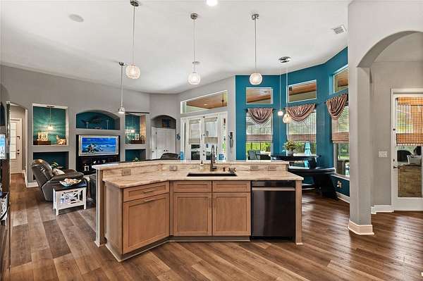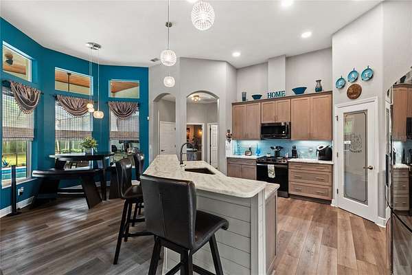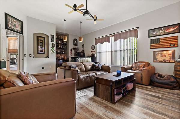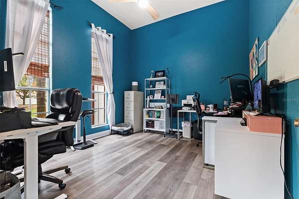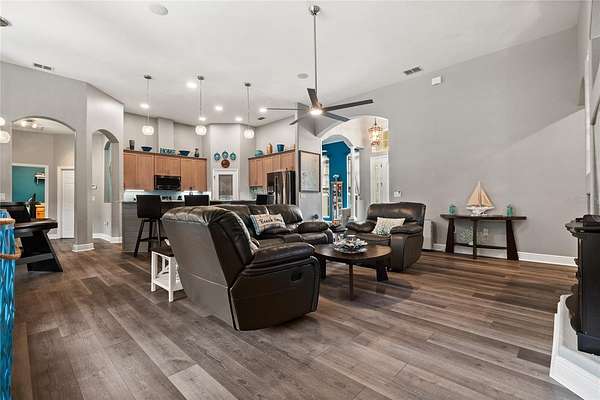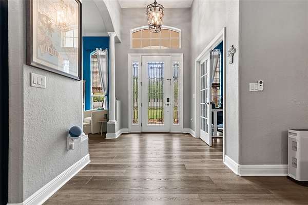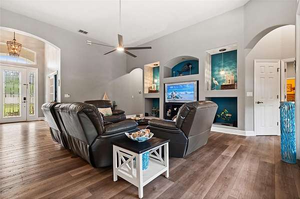 Situated on a quiet cul-de-sac on 1.5 private acres in the desirable Cypress Reserve community just outside Plant City, this beautifully updated 4-bedroom, 3.5-bath estate with a 3-car garage plus a dedicated office offers a rare blend of space, privacy, and thoughtfully curated upgrades. With easy access to I-4 and I-75 and less than 30 minutes to downtown Tampa, this property delivers the perfect balance of peaceful living and everyday convenience. Inside, you’ll find a spacious layout enhanced by soaring 12-foot ceilings, designed for both comfortable daily living and effortless entertaining. In addition to the four bedrooms, a private office offers a quiet and flexible space ideal for working from home, managing daily tasks, or creating content. The updated kitchen serves as the heart of the home, featuring new cabinetry, quartzite countertops, and timeless finishes that blend style and function. New luxury vinyl plank flooring adds warmth and durability, while the family/game room is enhanced by a custom-built bar and a custom designed half bath—creating the perfect space to gather, entertain, and unwind. For added peace of mind, the home is also equipped with a 5-camera security system.