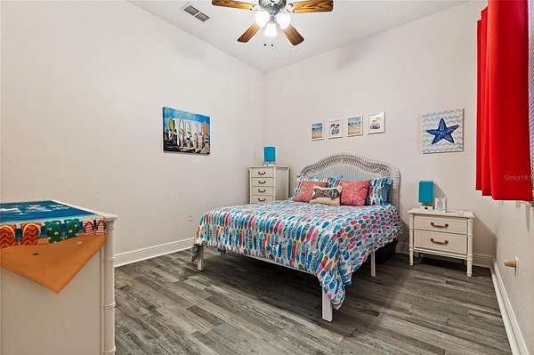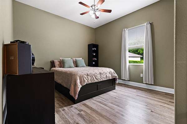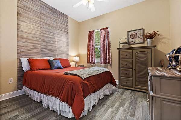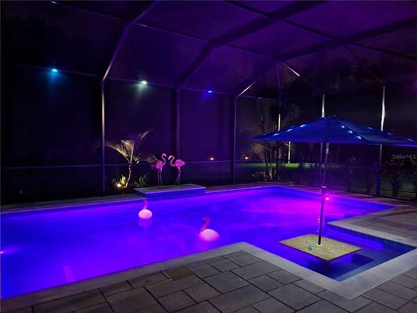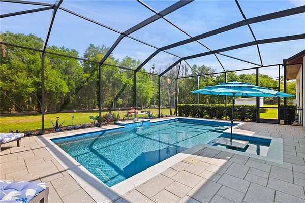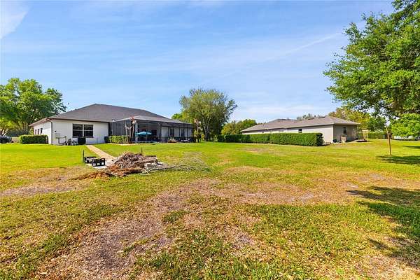 The master suite features an en-suite bath with a dual walk-in shower, two shower heads, and a deep soaking tub for a luxurious finish. Guest Bedroom 2 features its own ensuite bath with a tub/shower combination — perfect for visiting family and friends. The third full bathroom serves the rest of the home. Step outside and experience the best of Florida outdoor living. The screen-enclosed saltwater pool is heated and features colored LED lighting along with a built-in granite table with umbrella seating, offering a resort-style setting perfect for relaxing or entertaining guests. The outdoor kitchen and beautifully updated lanai with a new tongue-and-groove ceiling create an inviting outdoor living space that can be enjoyed year-round. Beyond the pool area, a backyard fire pit with bench seating and a connecting pathway creates an additional gathering space, perfect for enjoying Florida evenings under the stars. Major improvements provide confidence and long-term value, including a remodeled kitchen with new cabinetry and quartzite countertops (2021), new Rheem A/C and air handler (2021), new roof (2022), new pool (2022), new luxury vinyl plank flooring (2023), septic pump replacement (2025), and many additional upgrades throughout the home.