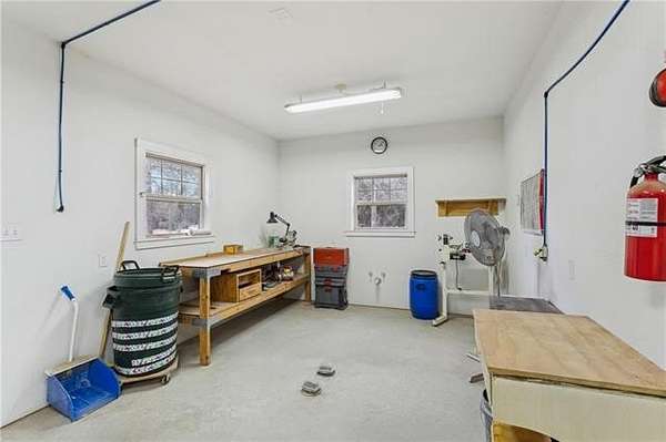 Step outside to an incredible workshop that offers endless potential. With plumbing already in place for hot and cold water, a restroom, and a drain for a future shower, this space could easily be transformed into a guest house. Whether you are a hobbyist, small business owner, or someone dreaming of a detached living space, this workshop delivers the flexibility you have been looking for. The property also includes an absolutely charming storage shed and well house designed with a barn-style exterior that adds both character and function. The expansive backyard provides a home generator, room to roam, to garden, entertain. A fire pit and play area creates the perfect setting for quiet evenings or hosting family and friends.