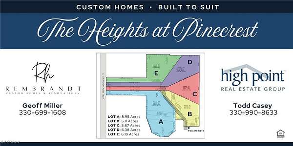 Soaring to new heights in The Heights at Pinecrest! Have you ever dreamed of building a new home? Looking for that rare opportunity to build your dream home on multiple acres of land? Have Rembrandt Homes award-winning team design and guide you every step of the way, and make today your "someday". Rembrandt Homes has been recognized as 4X Builder of the Year by the Home Builders Association. The Heights at Pinecrest is a 30+ acre private, secluded neighborhood, with 5 homesites. These one-of-a-kind private properties feature a rolling landscape, picturesque views, and offer different lot sizes all over over 5+ acres! All lots are wooded homesites- able to accommodate a walk-out design. Well, Septic, and Soil Test approved. Minimum square footage requirement: 2-story-2,800; Ranch-2,400. Come and build your dream home on this prime vacant land in Green!