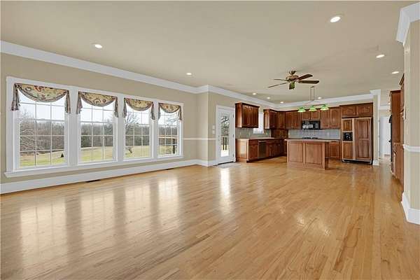 Welcome home to your private Missouri countryside estate - this expansive home makes a statement and is situated on 16+ of the most beautiful gently rolling acres. Perfectly set back, this sprawling 4790 sqft two story home has room for everyone. The main floor has a grand entry, solid oak wood flooring, a formal dining room, large windows, an office, extra sitting room / library / family room, general recreation room, fireplace w/ wood cabinets built-in, a large open kitchen, laundry room and half bathroom. Upstairs you will find an oversized primary bedroom featuring a cathedral ceiling, large bathroom setup as well as a closet the size of a small bedroom! Two other generously sized bedrooms with jack-n-jill bathroom access. The basement has solid flooring, tons of natural light, and a suite setup. The basement walks out to a concrete patio. This land is perfect for hobbyists, land enthusiasts, or really just about anyone! The land is open with mature surroundings and endless possibility for personalization. Enjoy quiet mornings on the deck, where there is room to breathe and space for recreation. This highly sought after location south of Warrensburg is positioned just close enough to conveniences but also just far enough away from restrictions. Opportunities like this don't come around often - schedule your private showing and experience the lifestyle this property was meant to offer.