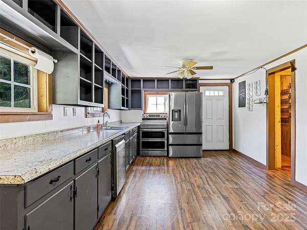 Motivated Seller Alert!! All offers will be considered. Nestled in the picturesque countryside near downtown Sylva, this delightful farmhouse cottage offers a serene retreat with all the charm of a classic homestead. This three-bedroom, one-bathroom home boasts a warm and inviting atmosphere. The expansive garden area is ideal for cultivating your favorite plants, while the charming chicken coop is ready for you to enjoy farm-fresh eggs. Views offering year-round enjoyment of the rolling mountain landscape. In addition to the main home, a detached utility building includes a versatile workshop area-perfect for hobbies, crafts, or additional storage. It also offers 908 sf of finished & heated space complete with a full bathroom & kitchen perfect for any number of at home uses. Whether you need a dedicated space for creative projects, or an at home office arrangement, this unit offers endless flexibility. Embrace the tranquility of country living with modern comforts and stunning natural beauty. Room for expansion with nearly ten acres to explore and an RV parking pad! Sellers offering heating concession at closing in order to upgrade the heating system in the main house.