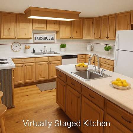 - Kitchen Island, Natural Woodwork, Open Floorplan, Primary Bedroom On Main, Tile Counters