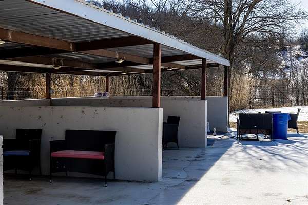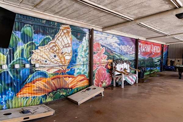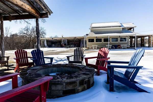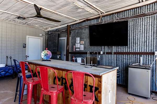 Outside, the property expands into a versatile outdoor area complete with a stage and multiple seating and gathering spaces. The open land offers tremendous flexibility for additional income-producing uses such as an event venue, live music venue, outdoor sports bar, food truck park, RV park, family restaurant with outdoor games, farmers market, plant nursery, or weekend flea market.