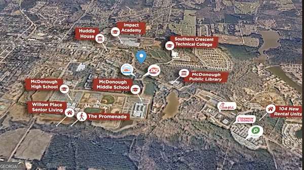 Est $9,800/mo5.17-acre commercial tract inside the McDonough city limits, just off Highway 81 and John Frank Ward Blvd-less than one mile from the HenryCounty Courthouse. Surrounded by government offices, schools, restaurants, retail, and institutional anchors. This site offers strong traffic flow,multiple points of access, and is minutes from the new McDonough Middle/High School campus, SCTC, Performing Arts Center, and thedowntown square. Zoned for commercial use. Potential for office, medical, institutional, or mixed-use development (subject to zoning). Tract 1 of2. Adjoining 21.52 acres also available. #AdamsAMI |