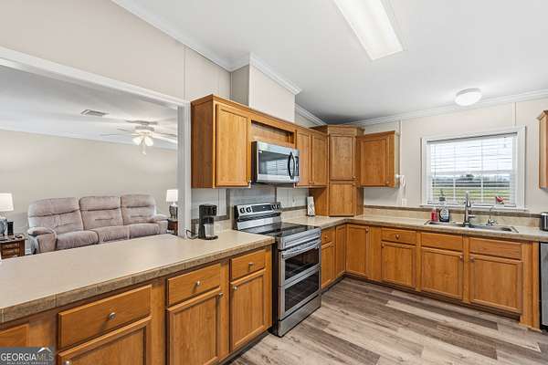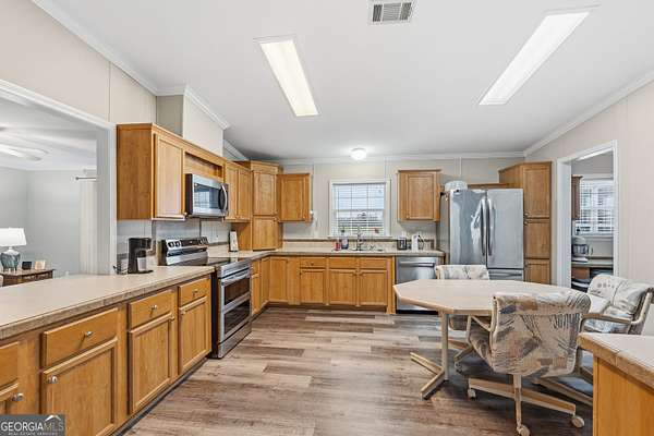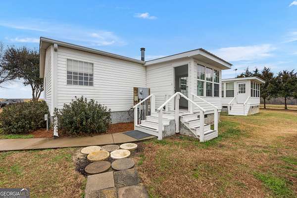 Room to Breathe-3BR Home on 1.58 Acres with Porch, Sunroom & Workshop Space Welcome home to this spacious 3-bedroom, 2-bath modular home offering 2,280 sq ft of comfortable living, perfectly situated on 1.58 acres of peaceful, usable land. Each bedroom features walk-in closets, providing ample storage throughout. Recent updates include a new roof, LVP flooring, interior paint and all new stainless steel appliances in 2023 for peace of mind and modern convenience. Range includes a built-in air fryer for fast, crispy results right in your oven. The property is adorned with several mature pecan trees and a thriving pear tree, creating a beautiful and productive outdoor setting. Enjoy relaxing mornings on the rocking-chair front porch, and appreciate the added functionality of both a sunroom and mudroom. Outdoor amenities abound with two outbuildings, including one ideal for outdoor cooking, plus a dedicated well house. A detached 26' x 36' garage offers abundant space for vehicles, equipment, or a workshop. This property blends space, updates, and country charm-perfect for those seeking room to live, work, and unwind.