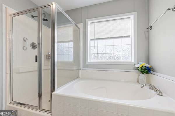 - Master On Main Level, Separate Shower, Soaking Tub, Split Bedroom Plan, Walk-In Closet(s)