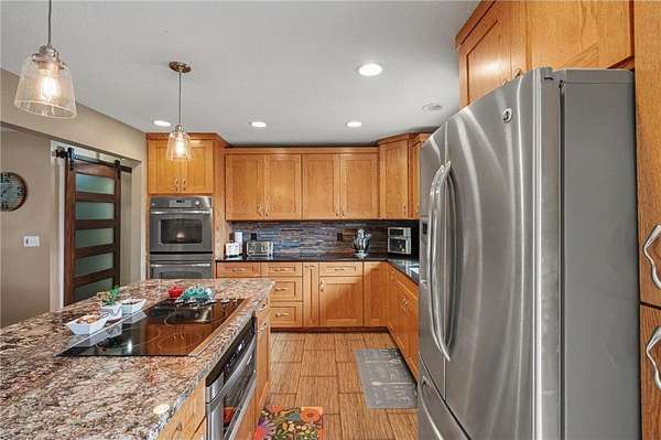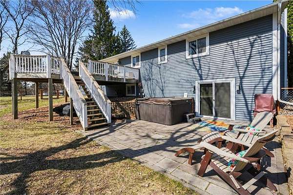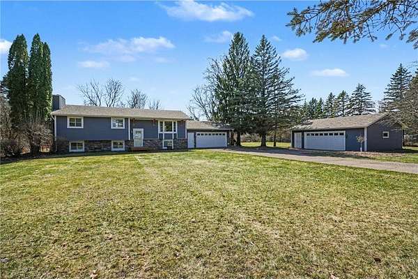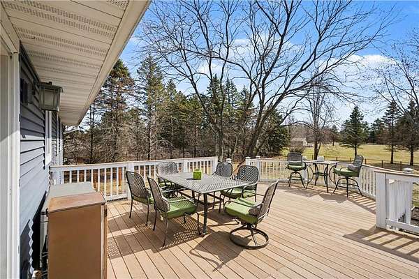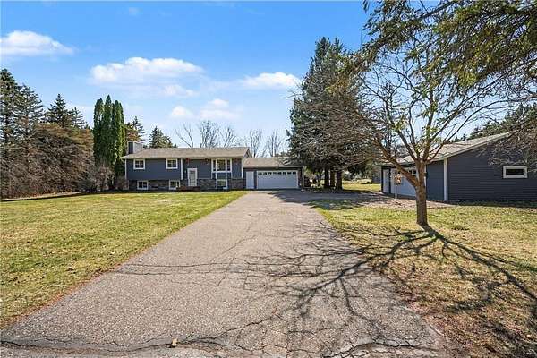 Enjoy space, privacy, and updates on this 1.65-acre Hudson property with room to add a pool, barn, or sport court. The fenced yard surrounds the home and features a hot tub (2019), garden beds, and raspberry, plum, and apple trees. Entertain with ease on the expansive deck or in the walk-out lower level with patio, bar area, and hot tub access. The remodeled custom kitchen offers stainless steel appliances, double wall oven, large island, ceramic backsplash, and custom cabinetry. Exceptional storage throughout with California Closets. Major updates include roof (2023), A/C (2023), furnace (2021), siding (2020), windows (2018), and washer/dryer (2020). Spacious double garage. Septic inspected. Convenient location just minutes to Hwy 12 and I-94.