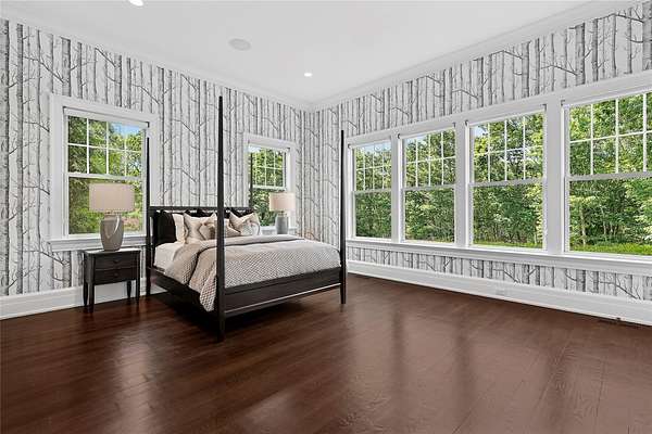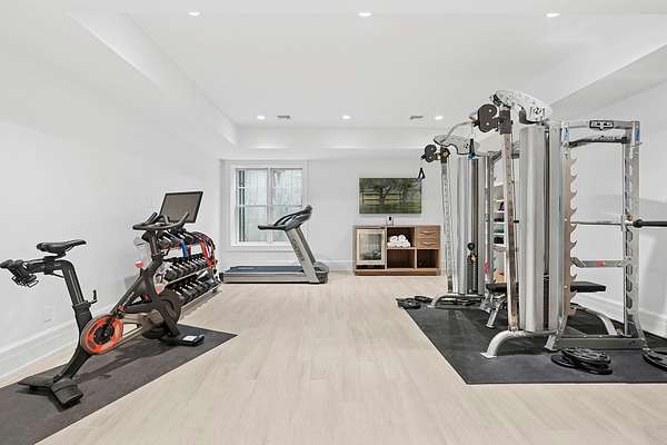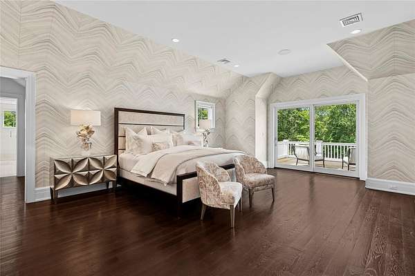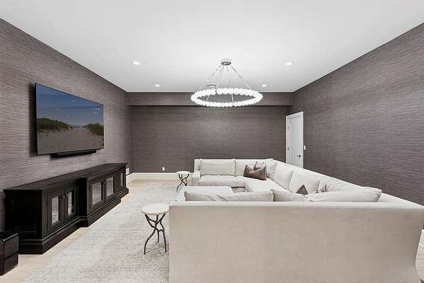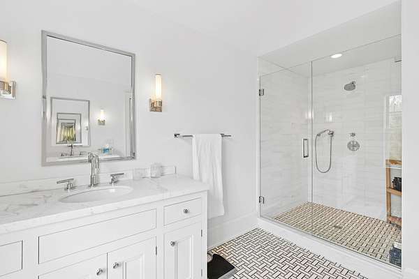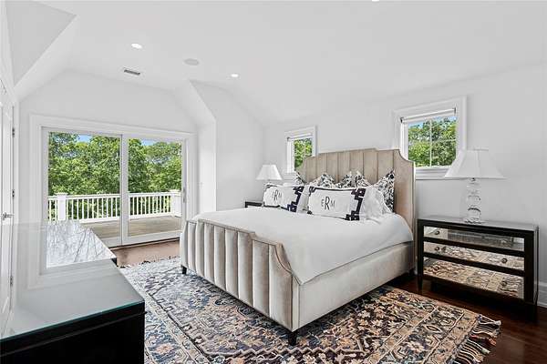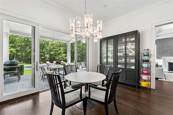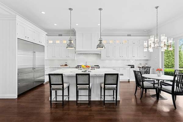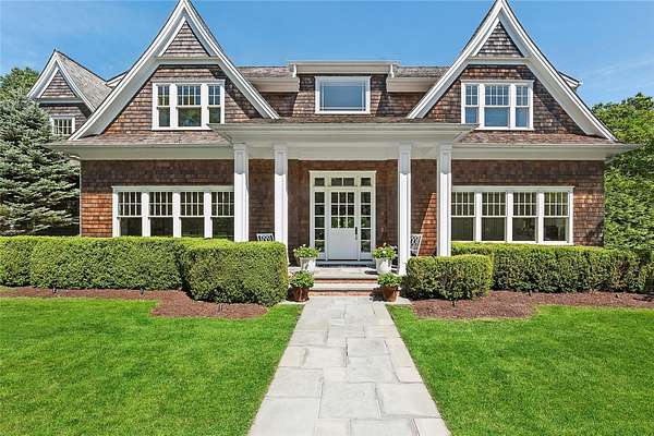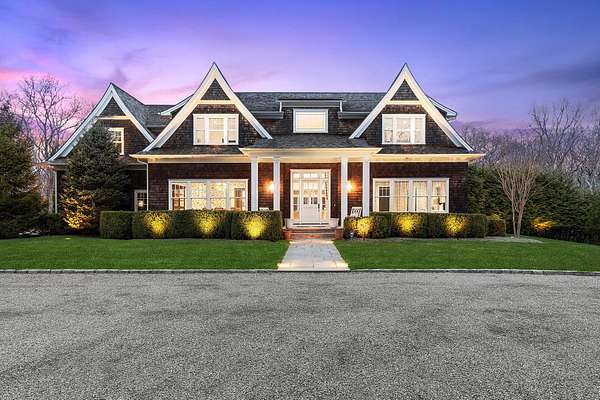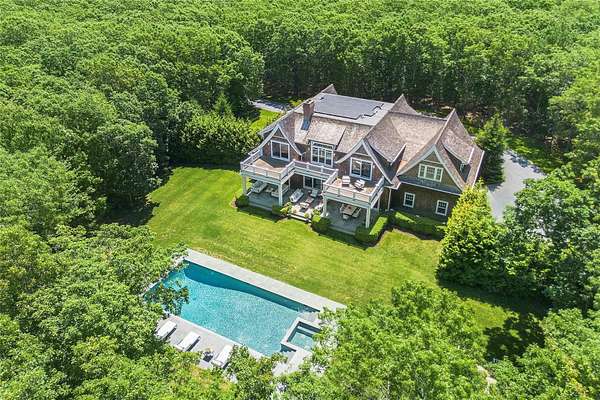 Tucked away down a winding driveway, past a gated entrance, and set on 6.5 acres of serene privacy, this extraordinary gabled estate offers the perfect Hamptons retreat. Conveniently located near the attractions of Bridgehampton and Sag Harbor, this immaculate residence spans over 8,000 square feet of pristine living space, featuring custom interior design and high-end details on all three levels. The home includes 8 spacious bedrooms, 7 full bathrooms, 2 half baths, a three-bay garage, a large gunite pool with a spa, and an expansive bluestone patio with multiple lounging areas, all surrounded by mature trees, lush landscaping and exterior lighting. A dramatic, double-height entry foyer welcomes you into the home, leading to the open living area with a fireplace and sliding windows that seamlessly blend the indoors with the natural surroundings. A luxurious den with a second fireplace provides an elegant retreat, offering serene pool views. The oversized chef's kitchen is a dream, perfect for cooking, dining, or entertaining. Carrara marble accents the generous island with bar seating, keeping guests close while you cook. Premium Sub-Zero, Wolf, and Miele appliances, including two dishwashers, make this space a chef's paradise. The formal dining room, just beyond, offers ample space for seating 12 or more guests. The main level also features one of the two primary bedrooms and a stylish powder room. Upstairs, you'll find 5 ensuite bedrooms, including the grand primary suite, which boasts a balcony, walk-in closet, and an expansive spa-inspired bathroom with marble sinks, a soaking tub and top-tier fixtures. Two of the guest suites also feature balconies, offering sunset views over the trees. The upstairs is completed with a large laundry room. The fully finished lower level offers 10-foot ceilings and is flooded with natural light from deep window wells. It includes two guest suites, a recreational area, media room, half bath, and a professional-grade home gym. The serene grounds are beautifully designed for entertaining and easy living, with lovely outdoor dining areas, and a heated 50-foot gunite pool with an integrated spa, all surrounded by natural bluestone. There's a covered porch for lounging and ample space for sunbathing, with the pool receiving beautiful southwestern light until sunset. The attached 3-car garage features high-performance epoxy flooring and custom cabinetry for toys and accessories. The home is equipped with Control4 automation, an indoor/outdoor sound system, security system, water filtration, and a multi-zone HVAC with humidification. This combination of meticulously maintained classic luxury, complete privacy, and easy access makes this estate one of the most exceptional properties available today.