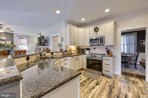 Nestled on a scenic 1.5+/- acre lot, this beautifully maintained 4-bedroom, 3.5-bath home with finished lower level and second kitchen offers a flexible floorplan and stylish updates throughout. The outdoor living spaces are an entertainer's dream, complete with a heated inground saltwater pool (Fox Pool, 2017) and expansive outdoor living spaces. A covered front porch welcomes you into a two-story foyer, leading to an open and inviting main living area that seamlessly connects the living room and kitchen with dining area-perfect for memorable gatherings and everyday living. Just off the foyer, you'll find a formal dining room with chair rail and crown molding, as well as a home office. The open kitchen is thoughtfully designed with new stainless steel appliances, granite countertops, tile backsplash, breakfast bar, coffee bar, recessed lighting, and a spacious eating area. Adjacent, the large living room features a propane fireplace accented with shiplap and a convenient staircase to the second floor. Abundant windows across the back of the home provide natural light and stunning views of the surrounding scenery. A deck off the kitchen eating area offers easy access to outdoor entertaining. The finished lower level provides versatile living space, including a second kitchen with island, a family room and recreation area, a full bathroom, and a separate room ideal for a home gym, office, media space, or whatever use fits your needs. This level is partially daylight and is walk-out, enhancing the connection to the outdoor oasis. Upstairs, the primary suite impresses with cathedral ceilings, a bath featuring a jetted tub, double-head shower, and a walk-in closet. Three additional spacious bedrooms offer ample closet space, including two with walk-in closets. Recently installed carpet in the second floor and first-floor office. Additional highlights include a 2-car garage with great storage, an everyday entry area from the garage with rear access, a separate laundry room with sink and cabinets, and a convenient first-floor half bath. Solar Panels included (buyer to assume existing solar loan - call for details). Don't miss this rare opportunity to own a move-in-ready home with stunning indoor and outdoor spaces - perfect for making lasting memories.