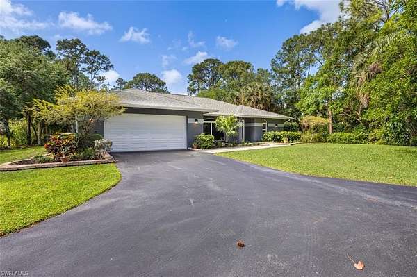 Escape to your own tropical paradise on 2.73 acres of fully fenced land! This beautifully maintained 3-bedroom, 2-bath pool and spa home offers the perfect blend of privacy, comfort, and convenience-just minutes from I-75, North Naples, downtown Naples, and stunning Gulf beaches. A private, tree-lined drive welcomes you home, with lush landscaping and mature shrubbery creating a peaceful, secluded setting. Inside, the thoughtfully designed floor plan features both a separate living room and family room, a breakfast bar for casual dining, and a split-bedroom layout ideal for families or guests. The expansive property offers endless possibilities, with ample space to build a warehouse, garages, or workshop. Bring all your toys-there's plenty of room for RVs, boats, and more! Enjoy the beauty of mature fruit trees throughout the property, including grapefruit, lemon, mango, and orange. Key updates include a new roof (2013). This unique property is easy to show and ready to welcome you home!