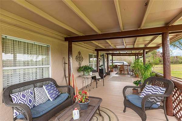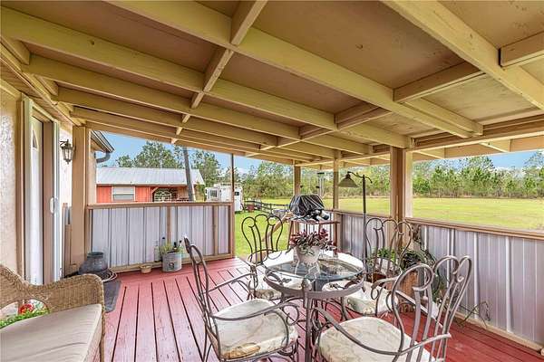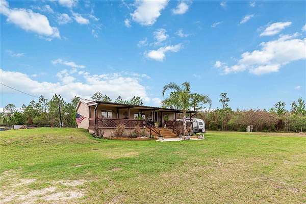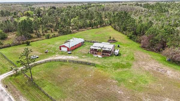 Spacious 11.48 Acre property with a 3 bedroom 2 bath home and an oversized barn/workshop/garage just waiting for the right buyer to step in a create their own private world. Live in peace and quiet with enough land to build a dream estate, start farming, raise some chickens, or whatever your dream brings. The home boasts engineered wood floors, stainless appliances, and a split floor plan! The bones are great with a roof in 2018 (back porch roof and decking in December of 2025), ac was replaced in 2020, the septic drain field was replaced in 2020, and water heater replaced in 2024. The front porch is enormous and perfect for enjoying the Florida weather, or you can relax in the sanctity of your back porch overlooking the acreage. Three acres have been cleared off already and are ready for your dream! Don't miss this opportunity to have your own piece of paradise, make an appointment today.