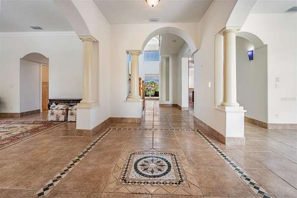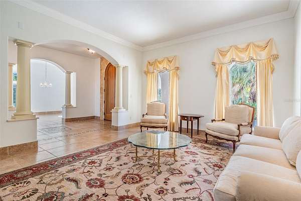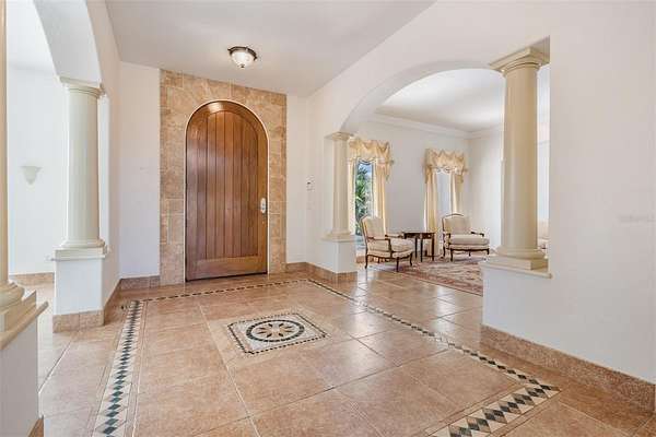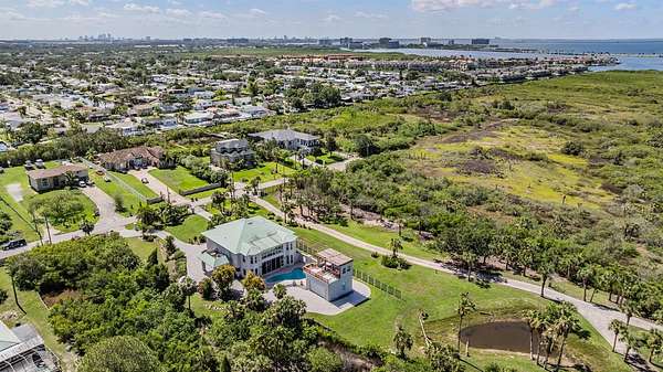 EXCLUSIVE ESTATE nestled in Rocky Point Preserve area of Tampa, offers a rare, 5-acre Park-like Setting, minutes from the airport, major highways, shopping and beaches! PALM TREES & TROPICAL BREEZES add to the Expansive, SPECTACULAR views from second story breezeway, loft, cabana upper deck and most bedrooms in this sprawling 5543 square foot extraordinary, CUSTOM BUILT, Concrete block and stucco PRIVATE RESIDENCE! Gated Entrance with Circular Drive, welcomes you to relax on your covered front porch with solar lit Tropical landscape! Exquisite Solid Wooden Arched front entry door OPENS to Tile inlay floor accenting the dramatic Foyer between Spacious Formal Living & Dining Room, lit with Waterford Crystal Chandelier from England! Architectural Details abound with ARCHES, NICHES, COLUMNS, Tray ceilings and GLEAMING GRANITE staircase with wrought iron & wood railings. Heart of the home includes a palatial gathering room with SOARING ceilings, palladium windows and direct access to screened lanai, overlooking your heated POOL (newly installed pump 2023 & pool heater 2021). Gourmet kitchen boasts Sub Zero refrigerator, Jenn-Air cooktop, Granite counters, breakfast bar, center island, solid wood raised panel cabinets, custom pantry and Miter window to take in the views. Walk in Wine cooler being used as extra pantry. Adjacent breakfast nook offers cathedral style ceilings and overlooks the pool! Main level includes Formal areas, great room, powder room, under stair storage and Primary RETREAT with sitting area and spacious bath ensuite boasting double vanities, granite tops, jetted soaking tub, water closet and large shower. Upstairs BONUS loft is great for game room/pool table with surround sound and lighted double tray ceiling. Sound proof MEDIA room wired for surround sound with built in arched bookcases and French doors, next to the STEAM Shower in upstairs bath! Guest bedrooms upstairs, with private bath ensuites, have walk in closets with closet organizers & turret bay window sitting areas with AMAZING views! The front bedroom doubles as upstairs office with closet plumbed for additional bathroom. 2 car garage with painted floor has several windows for natural lighting, with CABANA roof top deck above with SUMMER KITCHEN boasting FABULOUS views of Tampa BAY and the bridges (gorgeous at nite), natural mangroves & causeway across the bay to Clearwater/Westshore area. OUTDOOR LIVING is redefined here: a newly rescreened back porch (2023), a roof top cabana deck with summer kitchen, and sweeping views of Tampa Bay, the preserve, and cityscape. A floating dock on the private canal provides fishing and bay access on paddle board/canoe, PLUS a new dock at the rear of the property! Upgrades include METAL roof, hurricane-proof windows, newly painted exterior and driveway (2023), septic system (2019), mosquito spray system, water softener, instant-hot water, central vacuum, generator backup with propane hookup, six zone irrigation, landscape lighting, and pre-wiring for intercom. Nestled on a quiet dead-end street within a wildlife sanctuary that is home to eagles, osprey, herons, and flat-billed ducks, this distinguished Tampa Bay estate offers seamless accessibility to St. Pete, South Tampa, airports, shopping, and beaches. ALL THIS in a GREAT LOCATION, with no deed restrictions and NO CDD or HOA fees! For your private tour and to make this Estate yours in Sunny Florida... CALL TODAY!