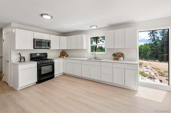 Discover mountain living with sweeping views of Pikes Peak, in this beautifully remodeled 2 bedroom, 2.5 bathroom Florissant home, set in the peaceful Indian Creek community. Close enough to main roads for practicality, yet tucked back enough to enjoy quiet surroundings, vibrant aspen groves, and unforgettable sunrises over the mountains. Inside, nearly every surface has been refreshed - new countertops, cabinets with hardware, sinks, and vanities bring a fresh feel to the kitchen and baths, while new laminate flooring, soft carpet, and crisp paint create a bright, inviting flow throughout. Outside, a spacious barn offers plenty of room for storage, projects, or animals. The newly finished driveway and road make access simple year-round. The voluntary HOA supports three community properties, annual BBQ, Halloween event, contributions to local services, and a warming hut. Whether you’re dreaming of a full-time residence, a weekend retreat, or a place with space for your projects and passions, this home blends thoughtful updates with a true Colorado lifestyle.