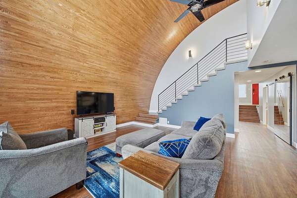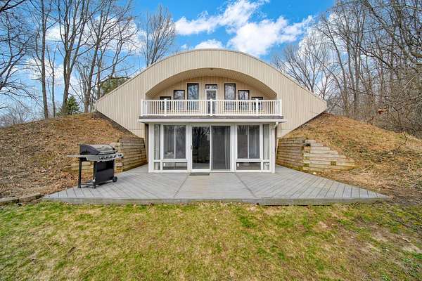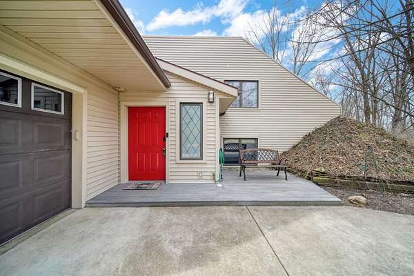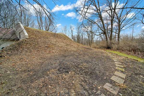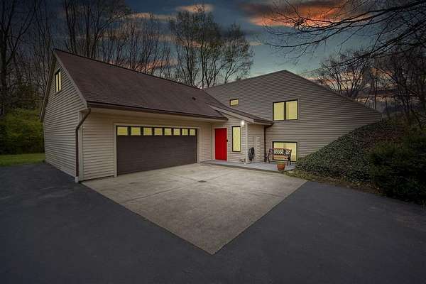 OFFER DEADLINE 4/1 by 11:59 PM. Eco-friendly, high-energy-efficient 3BR/2BA earth home tucked off the road in a relaxing retreat-like setting. This private, quiet property is situated on nearly 2 acres of peaceful scenery. Home features stunning wooden cathedral ceiling w/an open floor plan w/both an eat-in & formal dining area. Main level includes a 1st floor bedroom, full bath w/a jetted tub, laundry room & a workout/office room. Dreamy primary suite offers beautiful hardwood floors, large walk-in closet, gorgeous wall of windows & a private balcony w/Trex decking overlooking the serene wooded backyard. 3-season room & Trex deck provides breathtaking views & the perfect space for entertaining or wildlife watching. Abundant of closets, storage areas & crawlspace storage. Attached 2.5-car garage & bonus room ready to finish for additional living space. Newer roof (home), gutters, retaining wall, freshly painted interior & flooring throughout. Abundant of storage. Generator hook-up