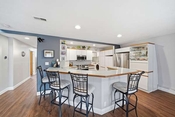 - Ceiling Fan(s), Central Vacuum, Eat-In Kitchen, Garage Door Opener