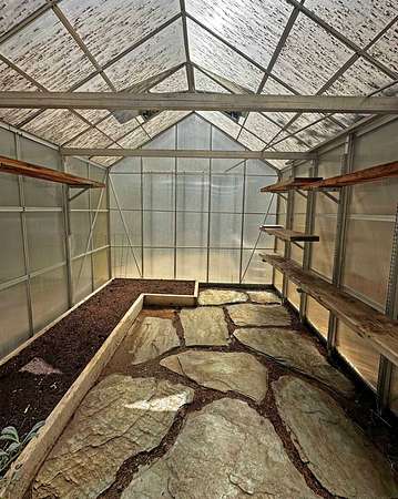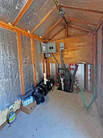 - Solar-vented greenhouse, plumbed from the wellhouse