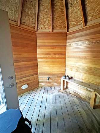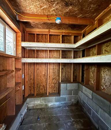The property also includes a clever temporary outhouse with a flush toilet, gravity-fed from the well and mounted atop a concrete holding tank. DEQ septic approval has already been obtained for installation of a permanent septic system.