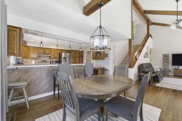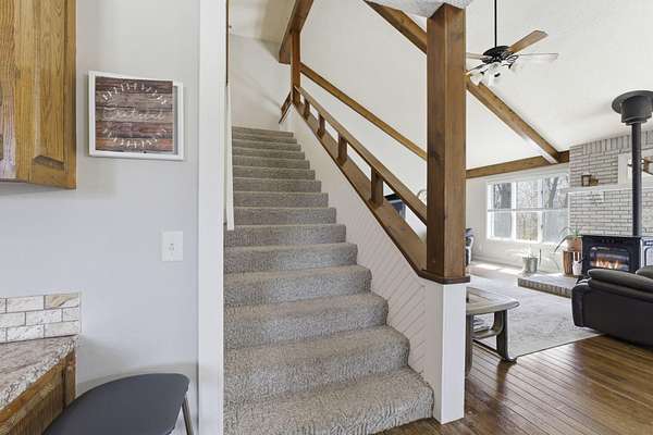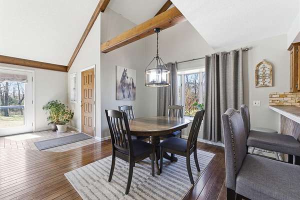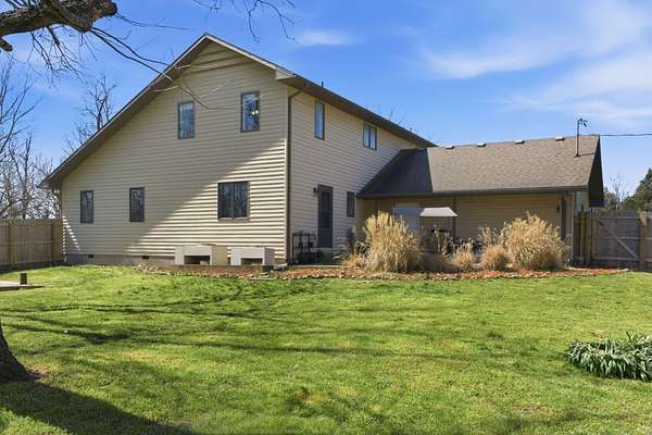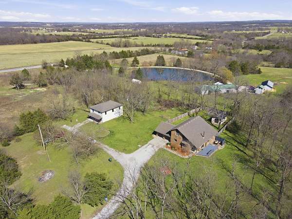 If you are looking for something that is not your typical cookie cutter home, but still delivers comfort, function, and a place that stands out in the right ways, this one is worth a look. It has a presence to it. Clean lines, solid materials, and just enough character to make it a looker.Located at 4712 South 140th Road on the south side of Bolivar, this 3 bedroom, 3 bath home sits on 4 acres and offers a strong mix of usability and appeal.Inside, vaulted ceilings in the living and dining area carry into the kitchen, creating an open space with natural light in every direction. A freestanding pellet stove adds both function and a focal point. The layout is practical, main level primary suite, large walk in closet, and a functional laundry and mudroom setup.The partial brick exterior and overall design give the home a look that stands apart without overdoing it. It is not flashy, just well put together and easy to appreciate.Outside, the yard is open with established landscaping, while scattered trees and wooded edges provide privacy where it counts. A cedar tree line creates a natural buffer from the road, giving the property a tucked away feel. The fenced backyard offers space for pets or a garden, and a small outbuilding works as a shed, kennel, or former coop. A side patio looks into the timber where wildlife is a regular part of the view.The 30x40 shop is ready to use with concrete floors, electric, and permanent workbenches. It is set up well for hobby use, storage, or projects. 3 overhead doors provide easy access for vehicles or equipment. The upper level is unfinished with potential for additional space.The home sits in a strong position on the acreage with the right mix of open space and privacy. Located just 5 minutes from Bolivar and about 30 minutes to Springfield, it offers convenience without giving up space.This is a property that simply works.