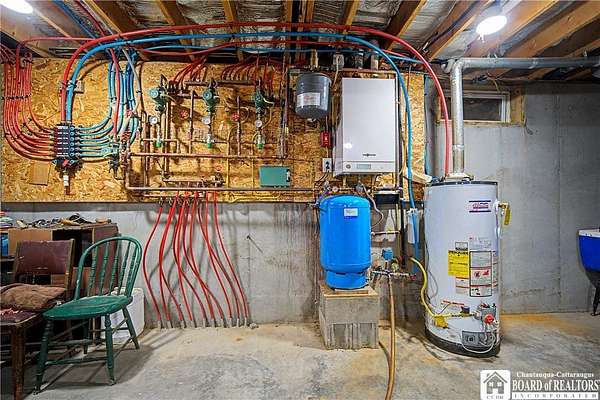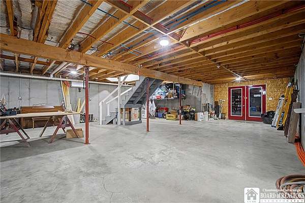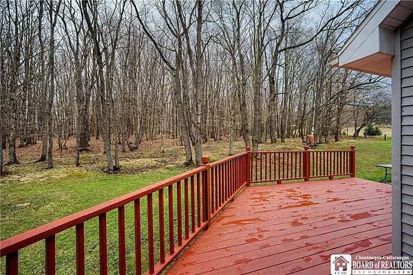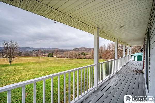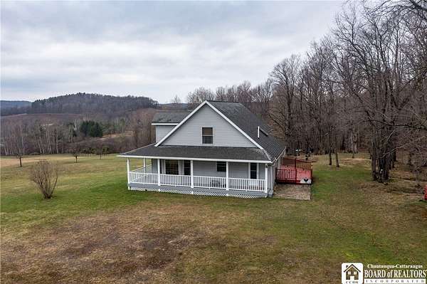 Escape to this charming Cape Cod home, offering 3 bedrooms, 2 full bathrooms, and breathtaking sunset views from a spacious wrap-around porch-all set atop 14 private acres in the scenic "Enchanted Mountains" of Cattaraugus County. Inside, you'll be welcomed by natural light pouring through numerous windows and a skylight that highlights the vaulted ceilings in the living room. Beautiful hardwood flooring and ceramic tile with radiant heat guides you throughout the first floor. This main level includes a desirable primary suite with a private full-bath, walk-in closet, and direct access to the rear deck. The kitchen offers ample cabinetry and a breakfast bar that opens the space to the dining-room where you can gather and enjoy the beautiful rural views. A spacious storage closet off the foyer makes accessing seasonal items a breeze, but could also be a great space to install a half-bath if desired. Upstairs you will find the second full-bathroom and two generously sized bedrooms with cozy dormer window nooks and ample closet space. The unfinished basement has radiant heat floors and is a blank canvas with endless possibilities! The attached garage can be accessed through this space and has roughed-in water lines for radiant floor heat. Outdoors, you'll find a well-insulated outbuilding with electric service-ideal for a workshop, hobbies, or extra storage! The rear portion of the property is surrounded by peaceful woody acreage, offering privacy and endless opportunities for outdoor recreation. Built in 2007, this well maintained home is turn-key and the perfect blend of country living and convenience - 20 mins to Ellicottville or 10 mins to Randolph!