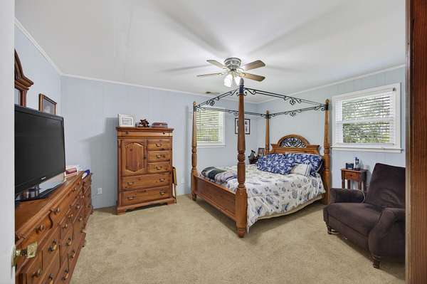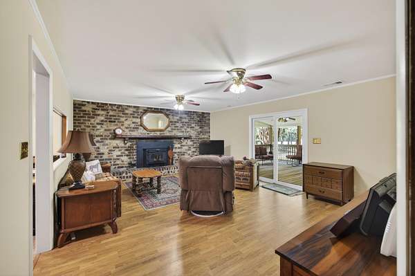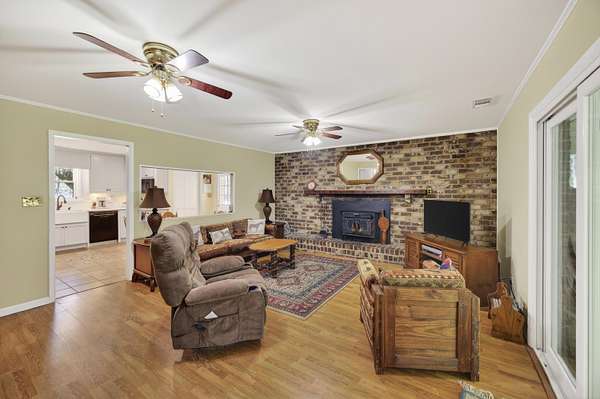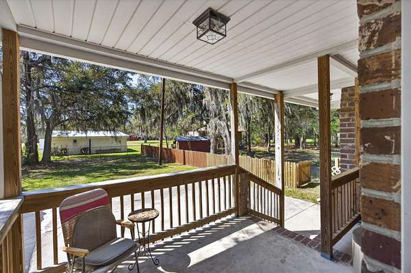 One-and-a-half-story brick ranch set on approximately 1.56 acres across two parcels, offering a quiet, spacious setting in Meggett.From the moment you step inside, the home welcomes you with a comfortable, natural flow--sitting room to the right and an eat-in dining space to the left. From the dining area, you move into the recently updated kitchen, featuring granite countertops, abundant cabinetry, and space for a breakfast nook, along with direct exterior access to a covered porch. A large window and open framed entry connect the kitchen to the living room, where a fireplace creates a natural gathering point. New sliding glass doors bring in natural light and open to an oversized covered porch--an inviting place to relax and take in the surrounding property.The main-level primary suite features a private en suite bathroom, while two additional bedrooms and a full bath complete the first floor. Upstairs, two finished rooms with ductless mini-split systems (2023) and a third full bathroom provide flexible space for a variety of uses. The property also includes a small horse barn and two storage sheds, offering additional utility and flexibility for a variety of needs. Thoughtful updates include a Rinnai tankless water heater, upgraded 200-amp electrical service, updated ductwork, resurfaced driveway, French drains, and newer windows--adding to the overall care and improvements made throughout the home. Sale includes Tax Map #162-00-00-028 & #162-00-00-339. Additional parcels available. See MLS #26008428 for details.