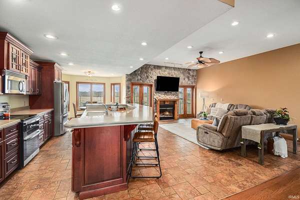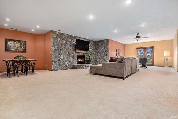 Est $4,191/mo19 Acres close to Warsaw with woods, trails & room for farm animals. Newer 72x50 insulated pole building with HEATED floors is perfect for parking your RV & still have room for hobbies, home business & play. Quality custom built, one owner home with a finished walk out lower level. Main level offers all hardwood flooring & solid doors plus a delightful kitchen with massive island. Multiple living spaces w’2 fireplaces & a theatre room. New roof, efficient geothermal heating/cooling, fenced area in yard for pets & beautiful sunsets. Acreage is increasingly hard to find & building costs make this home an amazing opportunity!